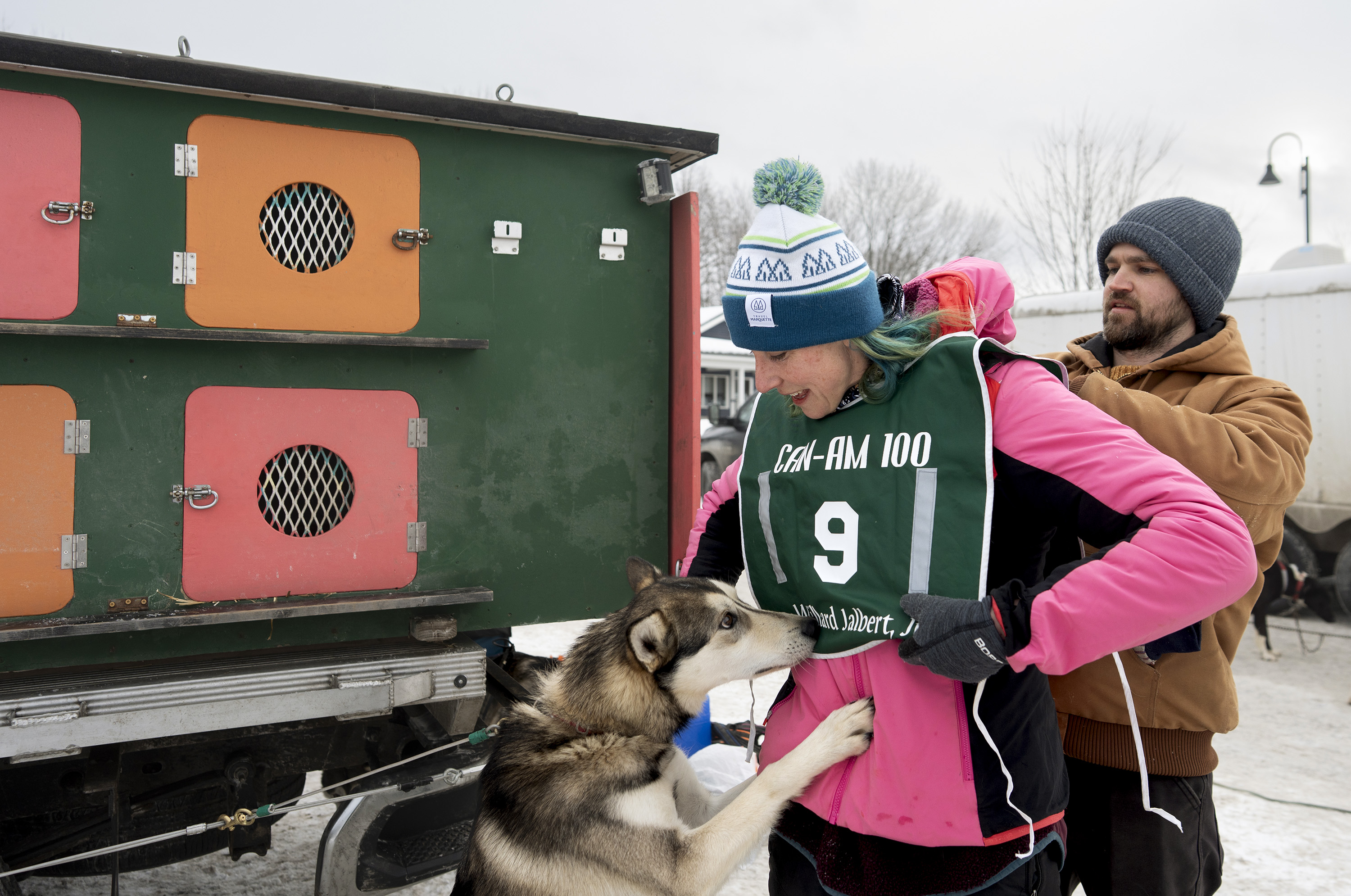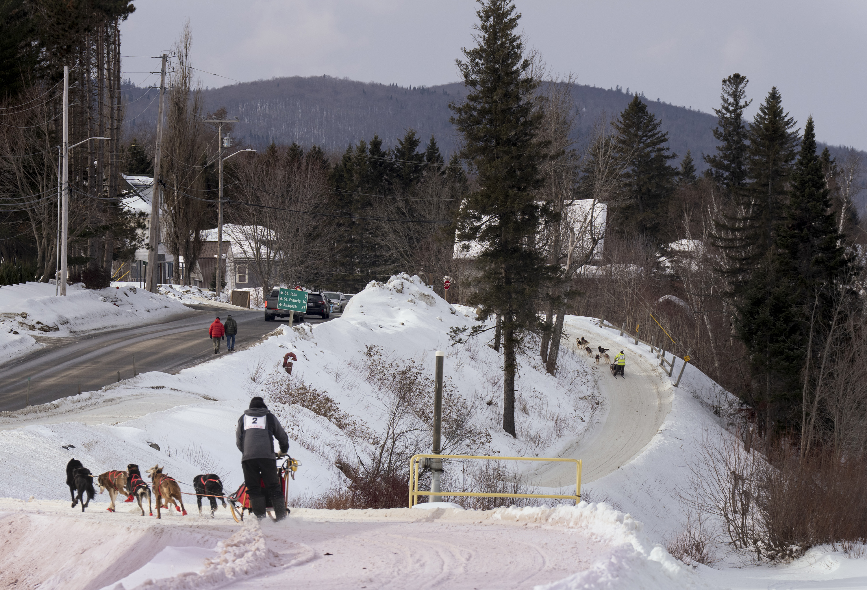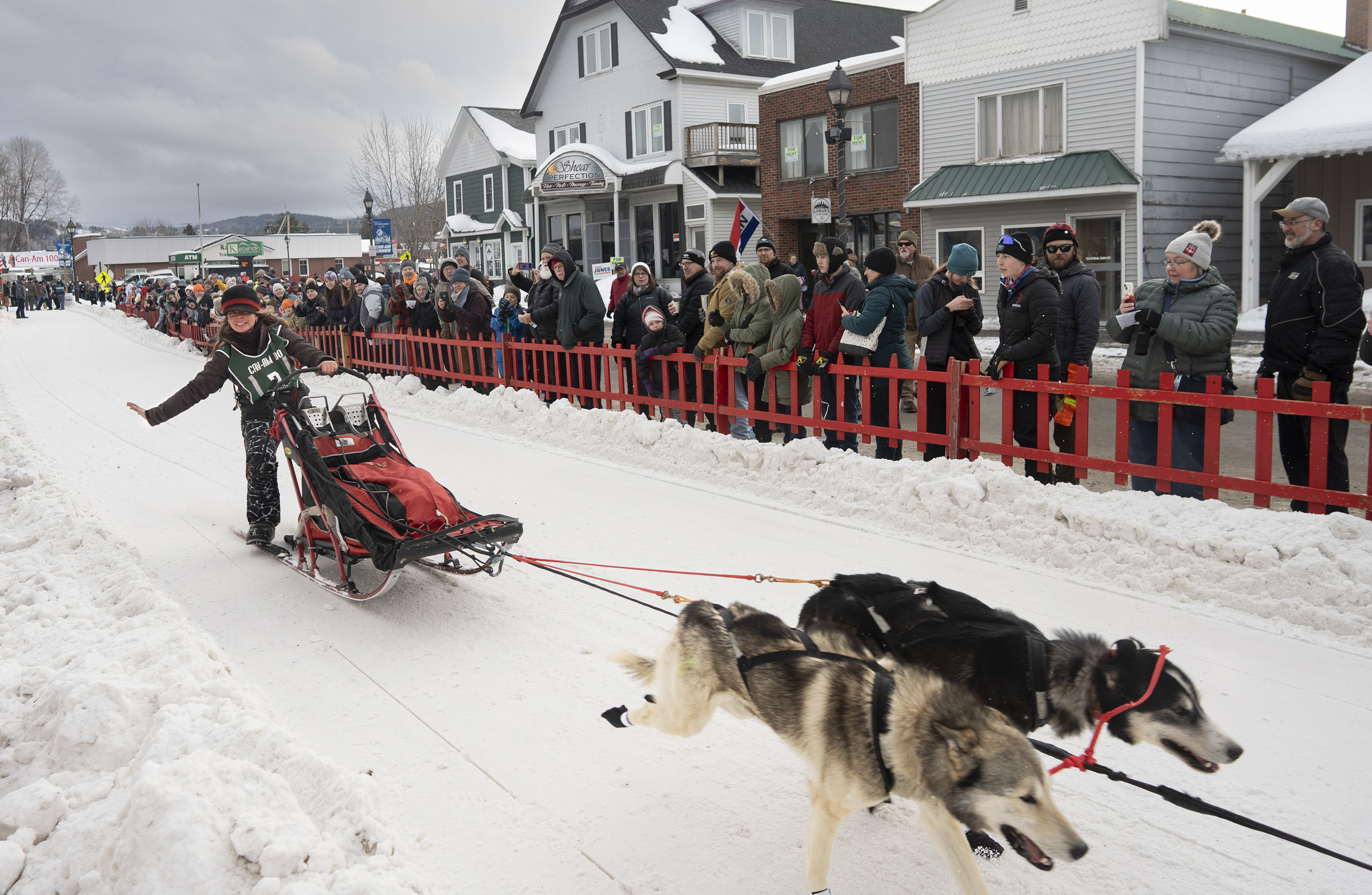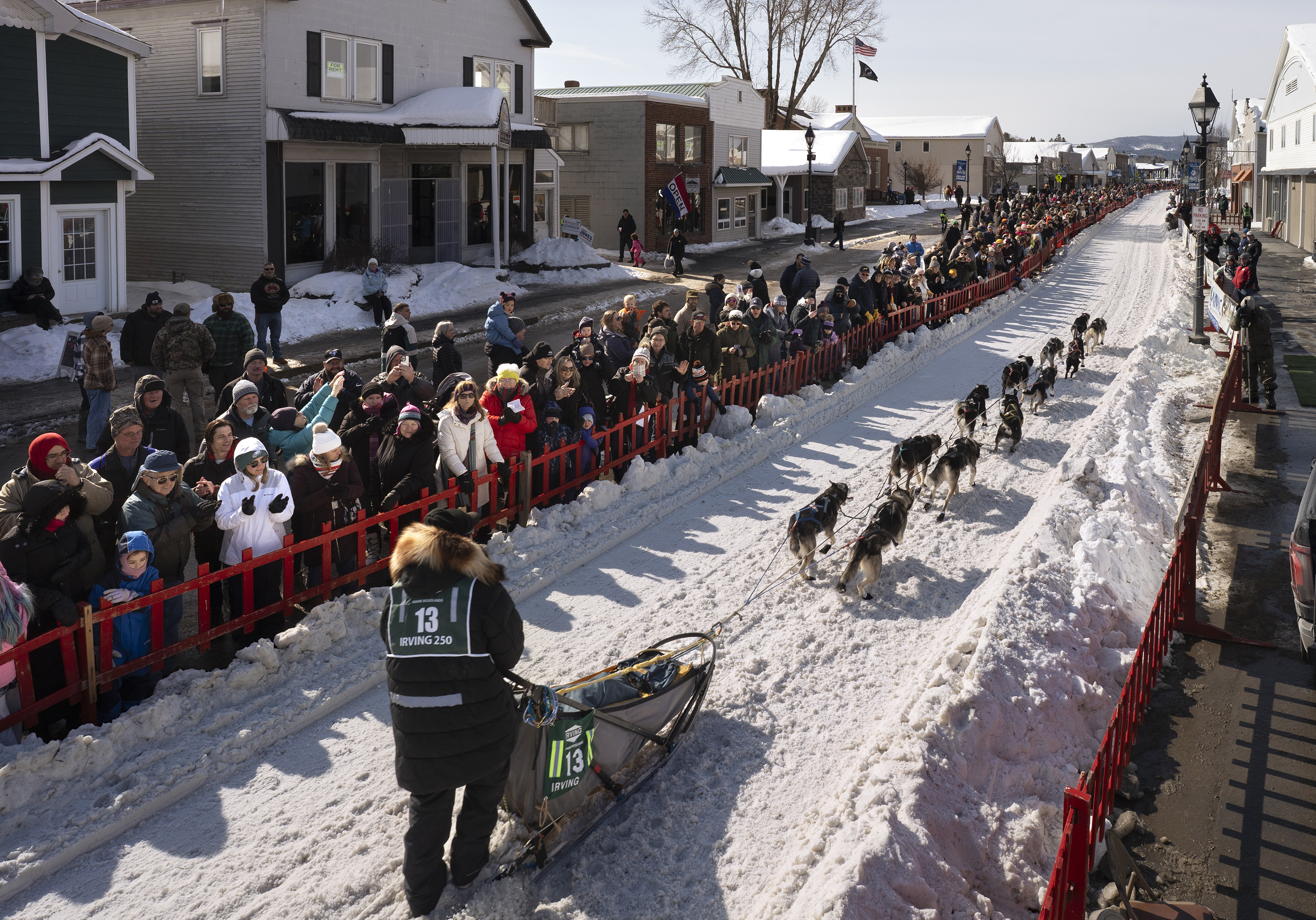 Crews spread snow that was trucked in Friday night to create the starting run for the Can-Am Crown International Sled Dog Races on Main Street in Fort Kent.Nate Webb helps musher Alex Gurka put on her bib while her dog, Turkey Tail, gives it a sniff before the start of the 100-mile Can-Am Crown International Sled Dog Race in Fort Kent on Saturday. Gurka, of Winn, ended up pulling out of the race after about 80 miles for the safety of her dogs.Julia Klaucke of Medford puts a harness on her dog Pumpkin, who she calls Pump for short, on Saturday.Julia Klaucke of Medford talks with her dogs outside her trailer before the start of the 100-mile Can-Am Crown International Sled Dog Race in Fort Kent on Saturday.Becki Tucker of Fort Kent reaches out to high five a spectator as she pulls away from the starting line in the 100-mile Can-Am Crown International Sled Dog Race in Fort Kent on Saturday. Tucker ended up scratching in the race.Lead dogs for musher Fayth Weed run away from the starting line during the 100-mile Can-Am Crown International Sled Dog Race in Fort Kent on Saturday.Amelia Schwarz of Pennsylvania climbs a hill near the Clair-Fort Kent International Bridge during the 30-mile Can-Am Crown International race in Fort Kent Maine on Saturday.Musher Eric Delisle of Quebec, left, rounds a corner as Amelia Schwarz of Pennsylvania climbs a hill in the distance during the 30-mile Can-Am Crown International Sled Dog Race in Fort Kent on Saturday. The first part of the trail leaving Fort Kent runs along Route 161, which leads to Allagash.Musher Lea Allen of New Brunswick and her team race down Main Street in Fort Kent at the start of the 100-mile Can-Am Crown International Sled Dog Race on Saturday.Keith Aili of Minnesota mushes down Main Street in Fort Kent at the start of the 250-mile Can-Am Crown International Sled Dog Race on Saturday. Aili arrived at the finish line on Monday night and was the winner of the race.Wyatt Marquis of Fort Kent heads toward the finish line in the 30-mile Can-Am Crown International Sled Dog Race in Fort Kent on Saturday. Marquis, 18, came in third place.Wearing just a short-sleeve shirt due to the warmer temperatures, musher Alexander Therriault of Oxford heads to the finish line in the 30-mile Can-Am Crown International Sled Dog Race in Fort Kent on Saturday. Therriault placed fourth in the race.Two dogs rest after finishing the 30-mile Can-Am Crown International Sled Dog Race in Fort Kent on Saturday.Mushers Sarah Gazo of Vermont and Aimee Nichols of Naples race down a hill during the 30-mile Can-Am Crown International Sled Dog Race in Fort Kent on Saturday.Aimee Nichols of Naples kisses one of her dogs after finishing the 30-mile Can-Am Crown International Sled Dog Race in Fort Kent on Saturday.The lead dogs of musher Catherine Benson of Baltimore head to the finish line in the 30-mile Can-Am Crown International Sled Dog Race in Fort Kent on Saturday.Snowmobilers ride with flags on Portage Lake ahead of the first musher to cross the lake in the 250-mile Can-Am Crown International Sled Dog Race at dusk on Saturday. From left is the Canadian flag, the Acadian flag, and an older version of the Minnesota state flag, which was displayed because the first musher across the lake was Erin Artemus of Minnesota.Martin Massicotte crosses Portage Lake at dusk on Saturday during the 250-mile Can-Am Crown International Sled Dog Race.Amy Dionne of Madawaska crosses Portage Lake at dusk on Saturday during the 250-mile Can-Am International Sled Dog Race.Amy Dionne of Madawaska talks with Dottie Dudley at a checkpoint on Portage Lake during the 250-mile Can-Am Crown International Sled Dog Race on Saturday. When mushers arrive at checkpoints, volunteers check to confirm they have all the supplies they are required to carry.Mushers Tristan Longchamps, left, and his father, Andre Longchamps, of Quebec pull out supplies while feeding their dogs at the first checkpoint for the 250-mile Can-Am Crown International Sled Dog Race on Saturday. Tristan finished third and Andre fourth in the race.Musher Tristan Longchamps of Quebec adds fuel to his cooking fire while resting and feeding his dogs Saturday night at the Portage Lake checkpoint of the 250-mile Can-Am Crown International Sled Dog Race. At right is musher Andre Longchamps, Tristan’s father. Tristan finished third and Andre fourth in the race.At the Portage Lake checkpoint for the 250-mile Can-am International Sled Dog Race, U.S. and Canadian flags flap in the wind along with flags from states and provinces of other competitors.Melodie Beauchemin of Quebec descends a hill near the finish line of the 100-mile Can-Am Crown International Sled Dog Race in Fort Kent on Saturday night. Beauchemin won the 100-mile race.After having her bib pulled off, Melodie Beauchemin of Quebec celebrates arriving at the finish line in the 100-mile Can-Am Crown International Sled Dog Race in Fort Kent on Saturday.Luc Fortin of Quebec nears the finish line in the 100-mile Can-Am Crown International Sled Dog Race in Fort Kent on Saturday.Musher Keven Lariviere of Quebec talks with one of his lead dogs after finishing the 100-mile Can-Am Crown International Sled Dog Race in Fort Kent on Saturday.