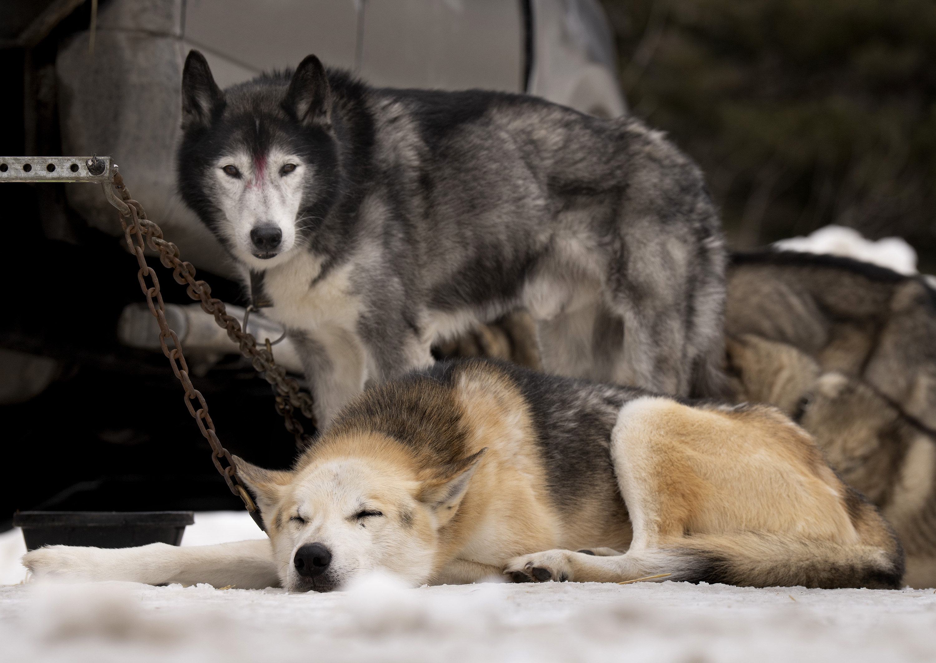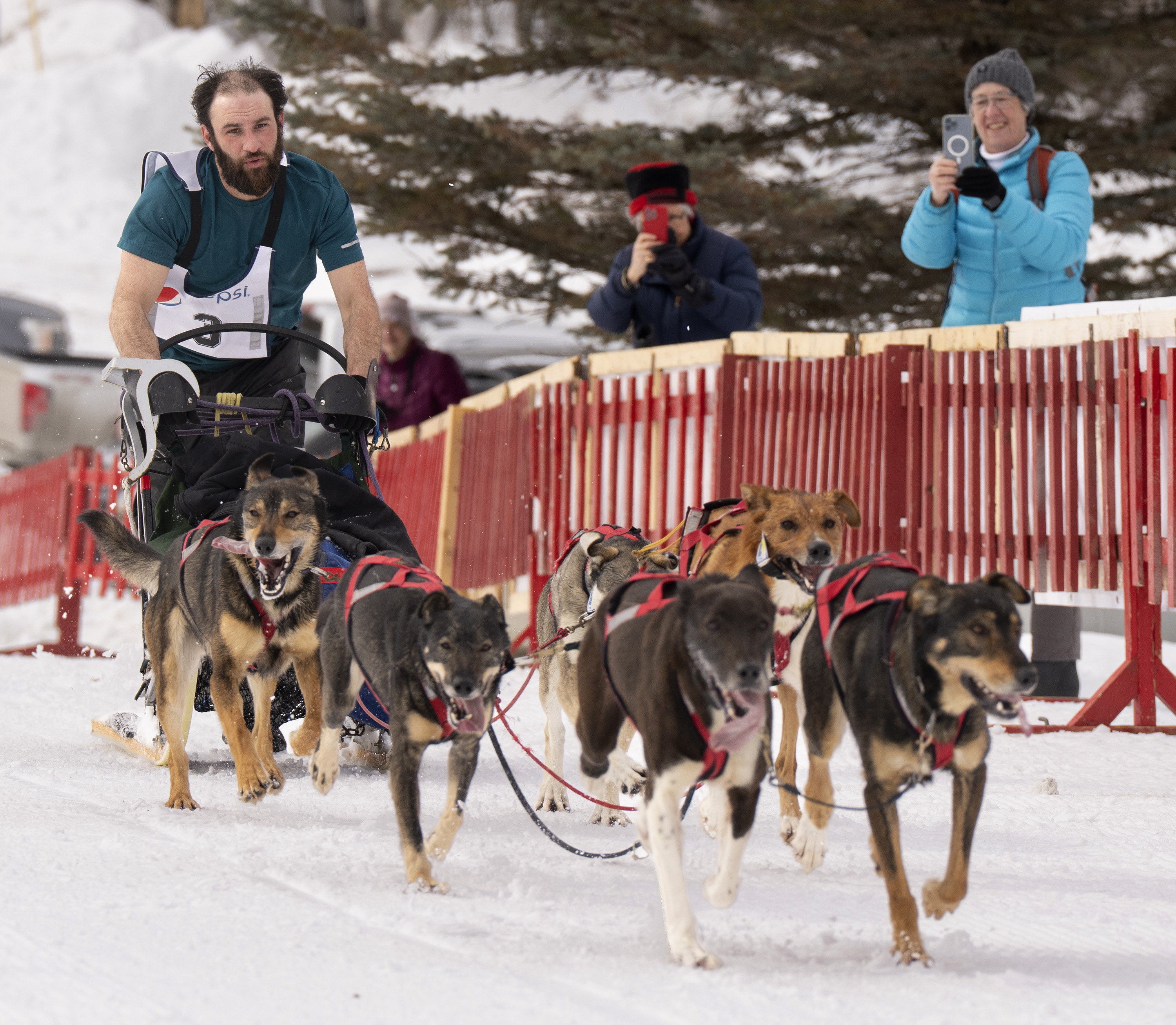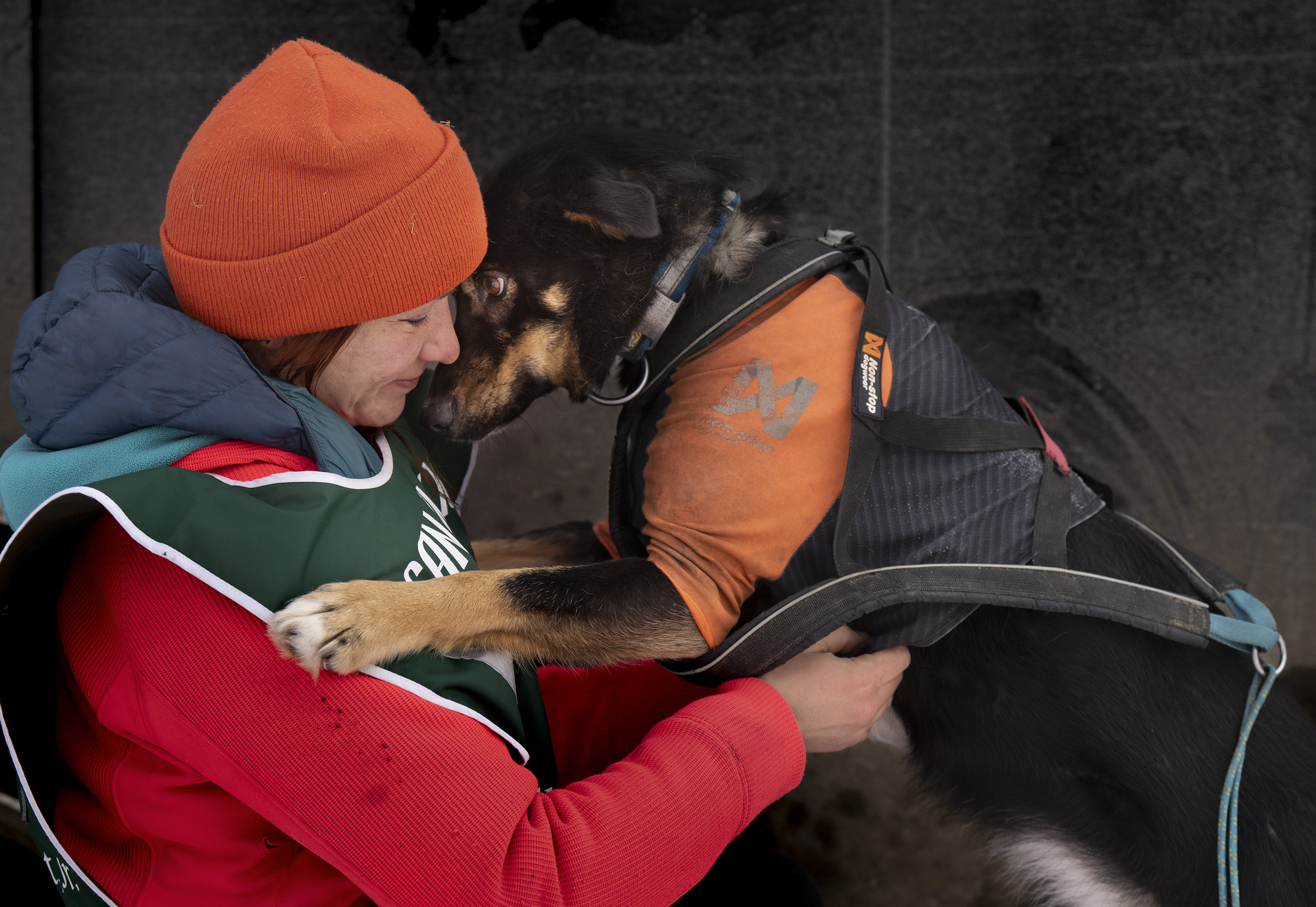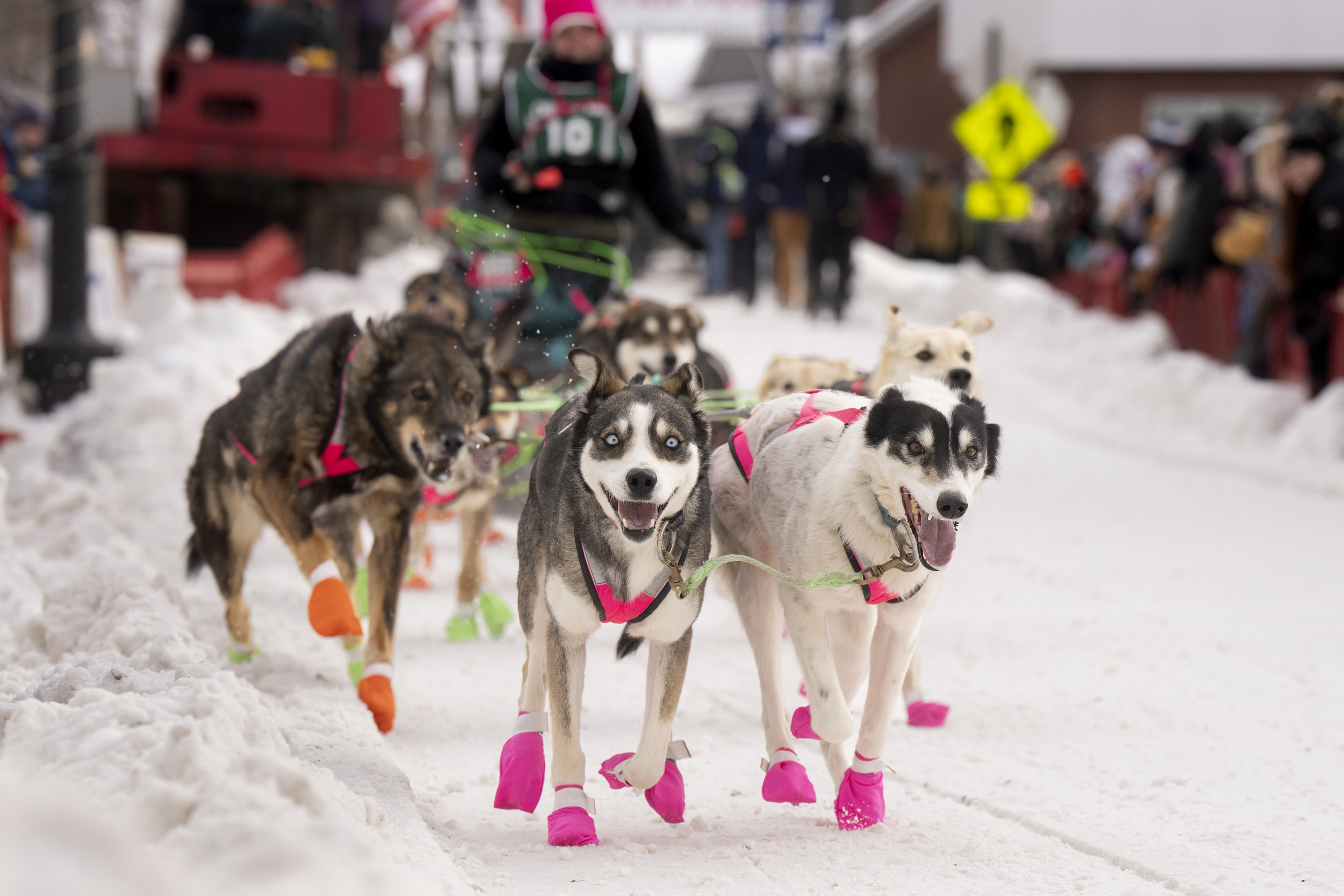 Crews spread snow that was trucked in Friday night to create the starting run for the Can-Am Crown International Sled Dog Races on Main Street in Fort Kent.Nate Webb helps musher Alex Gurka put on her bib while her dog, Turkey Tail, gives it a sniff before the start of the 100-mile Can-Am Crown International Sled Dog Race in Fort Kent on Saturday. Gurka, of Winn, ended up pulling out of the race after about 80 miles for the safety of her dogs.Julia Klaucke of Medford puts a harness on her dog Pumpkin, who she calls Pump for short, on Saturday.Julia Klaucke of Medford talks with her dogs outside her trailer before the start of the 100-mile Can-Am Crown International Sled Dog Race in Fort Kent on Saturday.Becki Tucker of Fort Kent reaches out to high five a spectator as she pulls away from the starting line in the 100-mile Can-Am Crown International Sled Dog Race in Fort Kent on Saturday. Tucker ended up scratching in the race.Lead dogs for musher Fayth Weed run away from the starting line during the 100-mile Can-Am Crown International Sled Dog Race in Fort Kent on Saturday.Amelia Schwarz of Pennsylvania climbs a hill near the Clair-Fort Kent International Bridge during the 30-mile Can-Am Crown International race in Fort Kent Maine on Saturday.Musher Eric Delisle of Quebec, left, rounds a corner as Amelia Schwarz of Pennsylvania climbs a hill in the distance during the 30-mile Can-Am Crown International Sled Dog Race in Fort Kent on Saturday. The first part of the trail leaving Fort Kent runs along Route 161, which leads to Allagash.Musher Lea Allen of New Brunswick and her team race down Main Street in Fort Kent at the start of the 100-mile Can-Am Crown International Sled Dog Race on Saturday.Keith Aili of Minnesota mushes down Main Street in Fort Kent at the start of the 250-mile Can-Am Crown International Sled Dog Race on Saturday. Aili arrived at the finish line on Monday night and was the winner of the race.Wyatt Marquis of Fort Kent heads toward the finish line in the 30-mile Can-Am Crown International Sled Dog Race in Fort Kent on Saturday. Marquis, 18, came in third place.Wearing just a short-sleeve shirt due to the warmer temperatures, musher Alexander Therriault of Oxford heads to the finish line in the 30-mile Can-Am Crown International Sled Dog Race in Fort Kent on Saturday. Therriault placed fourth in the race.Two dogs rest after finishing the 30-mile Can-Am Crown International Sled Dog Race in Fort Kent on Saturday.Mushers Sarah Gazo of Vermont and Aimee Nichols of Naples race down a hill during the 30-mile Can-Am Crown International Sled Dog Race in Fort Kent on Saturday.Aimee Nichols of Naples kisses one of her dogs after finishing the 30-mile Can-Am Crown International Sled Dog Race in Fort Kent on Saturday.The lead dogs of musher Catherine Benson of Baltimore head to the finish line in the 30-mile Can-Am Crown International Sled Dog Race in Fort Kent on Saturday.Snowmobilers ride with flags on Portage Lake ahead of the first musher to cross the lake in the 250-mile Can-Am Crown International Sled Dog Race at dusk on Saturday. From left is the Canadian flag, the Acadian flag, and an older version of the Minnesota state flag, which was displayed because the first musher across the lake was Erin Artemus of Minnesota.Martin Massicotte crosses Portage Lake at dusk on Saturday during the 250-mile Can-Am Crown International Sled Dog Race.Amy Dionne of Madawaska crosses Portage Lake at dusk on Saturday during the 250-mile Can-Am International Sled Dog Race.Amy Dionne of Madawaska talks with Dottie Dudley at a checkpoint on Portage Lake during the 250-mile Can-Am Crown International Sled Dog Race on Saturday. When mushers arrive at checkpoints, volunteers check to confirm they have all the supplies they are required to carry.Mushers Tristan Longchamps, left, and his father, Andre Longchamps, of Quebec pull out supplies while feeding their dogs at the first checkpoint for the 250-mile Can-Am Crown International Sled Dog Race on Saturday. Tristan finished third and Andre fourth in the race.Musher Tristan Longchamps of Quebec adds fuel to his cooking fire while resting and feeding his dogs Saturday night at the Portage Lake checkpoint of the 250-mile Can-Am Crown International Sled Dog Race. At right is musher Andre Longchamps, Tristan’s father. Tristan finished third and Andre fourth in the race.At the Portage Lake checkpoint for the 250-mile Can-am International Sled Dog Race, U.S. and Canadian flags flap in the wind along with flags from states and provinces of other competitors.Melodie Beauchemin of Quebec descends a hill near the finish line of the 100-mile Can-Am Crown International Sled Dog Race in Fort Kent on Saturday night. Beauchemin won the 100-mile race.After having her bib pulled off, Melodie Beauchemin of Quebec celebrates arriving at the finish line in the 100-mile Can-Am Crown International Sled Dog Race in Fort Kent on Saturday.Luc Fortin of Quebec nears the finish line in the 100-mile Can-Am Crown International Sled Dog Race in Fort Kent on Saturday.Musher Keven Lariviere of Quebec talks with one of his lead dogs after finishing the 100-mile Can-Am Crown International Sled Dog Race in Fort Kent on Saturday.