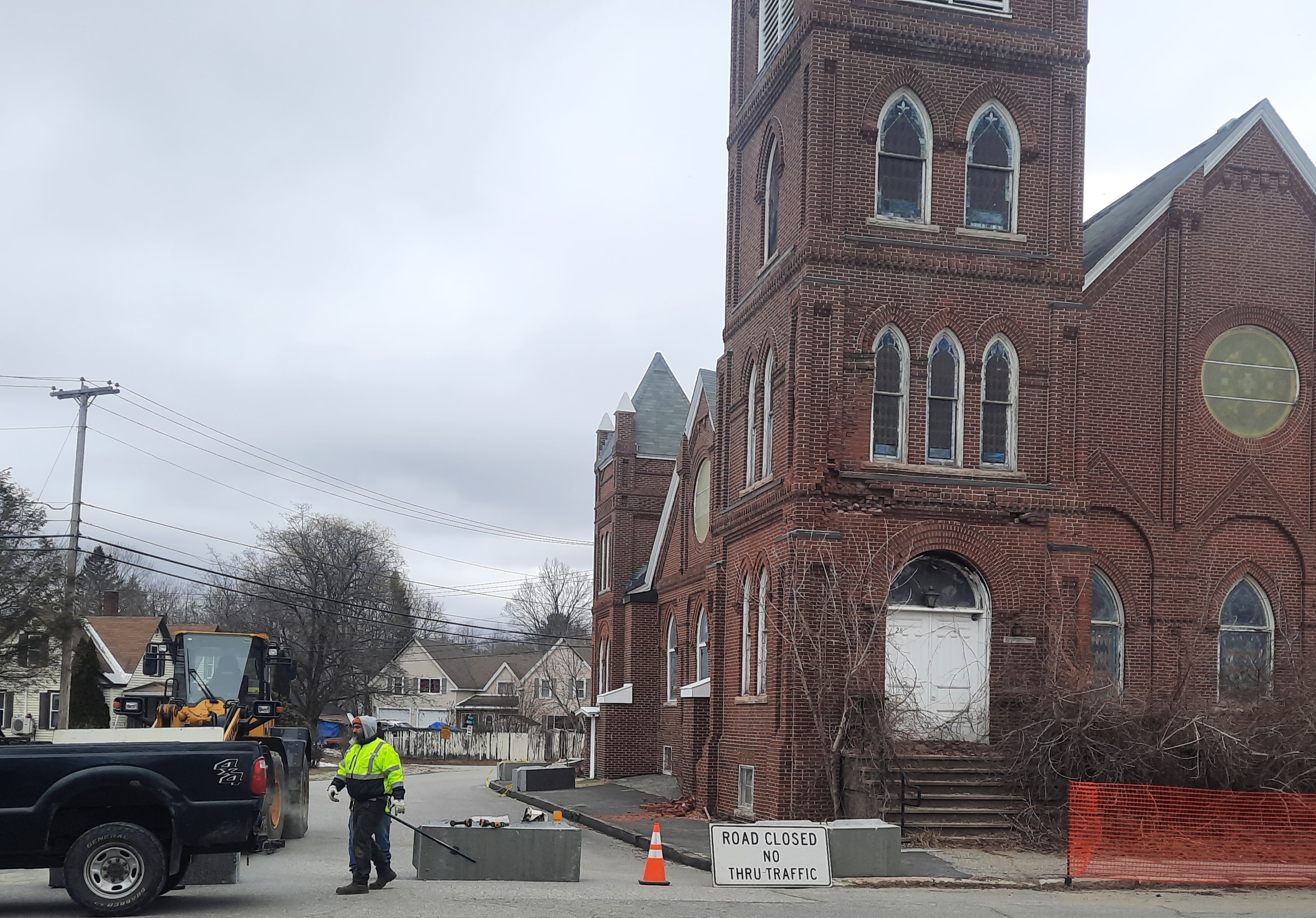 LIVERMORE FALLS — A section of Knapp Street at Church Street was closed March 19 after bricks and other debris were seen falling from the former Eaton Memorial United Methodist Church at 28-30 Church St., prompting immediate safety concerns.