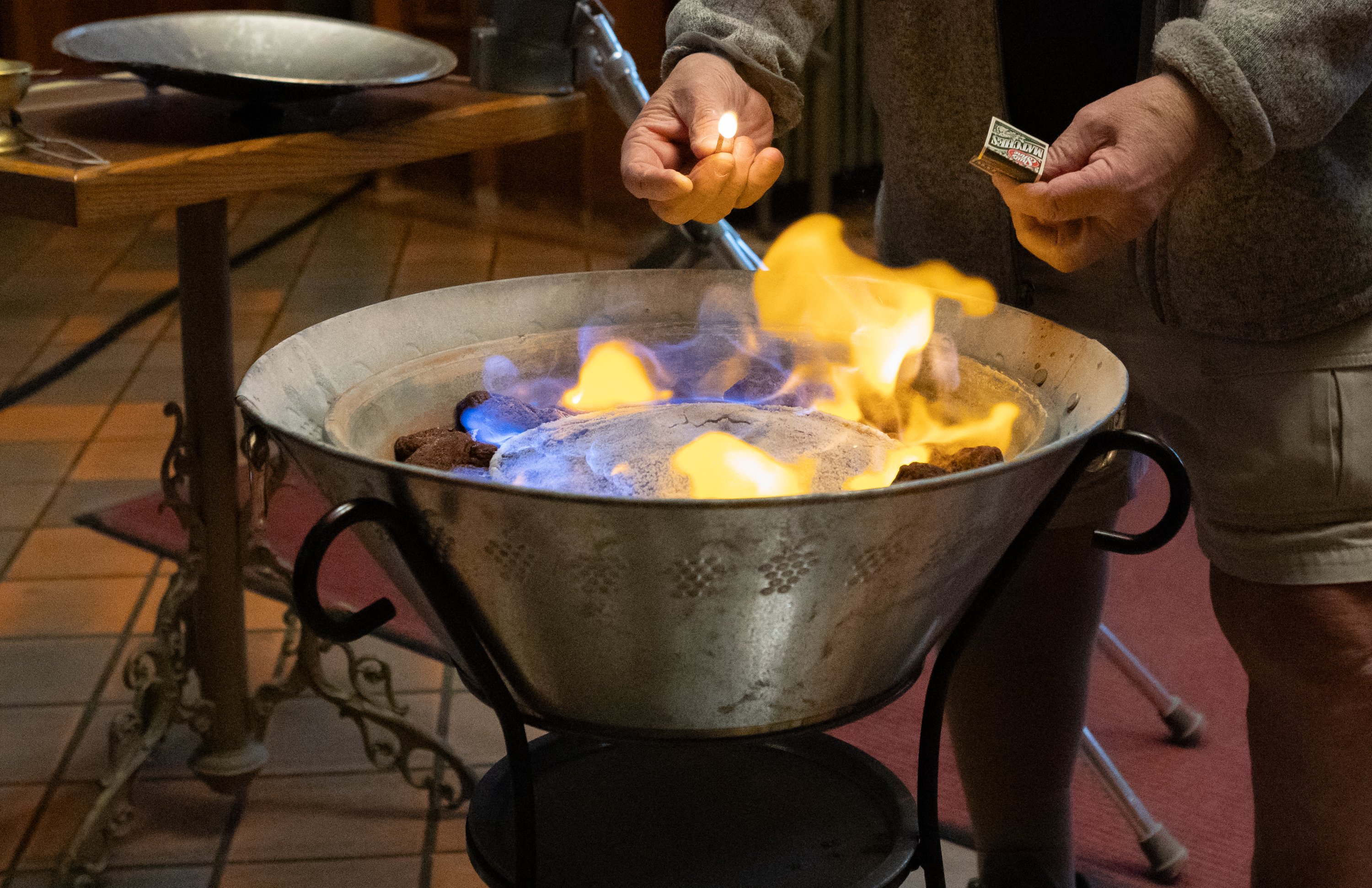 Purchase this imageCrucifixes are seen before being set out for a Good Friday service at the Basilica of Saints Peter and Paul in Lewiston. The Basilica is located at 122 Ash St. and will have Easter Sunday services at 7, 8:30, and 10:30 a.m., along with a 1 p.m. service that will be in Burundi.Jeff Caron removes a bowl containing Eucharist wafers from the high altar at the Basilica of Saints Peter and Paul before a Good Friday service later in the evening in Lewiston.LEWISTON, MAINE – April 4, 2026. Flames whoosh audibly after head sacristan Mark Labonte poured kerosene and lit a match to prepare for the Saturday Easter vigil at the Basilica of Saints Peter and Paul in Lewiston. The flame, known as the Paschal fire, represents the light of Christ in the Catholic faith, and is the only source of light when parishoners enter the church to start the vigil. Baptismal candidates light their own candles from the flame. (Libby Kamrowski Kenny/Staff Photographer)