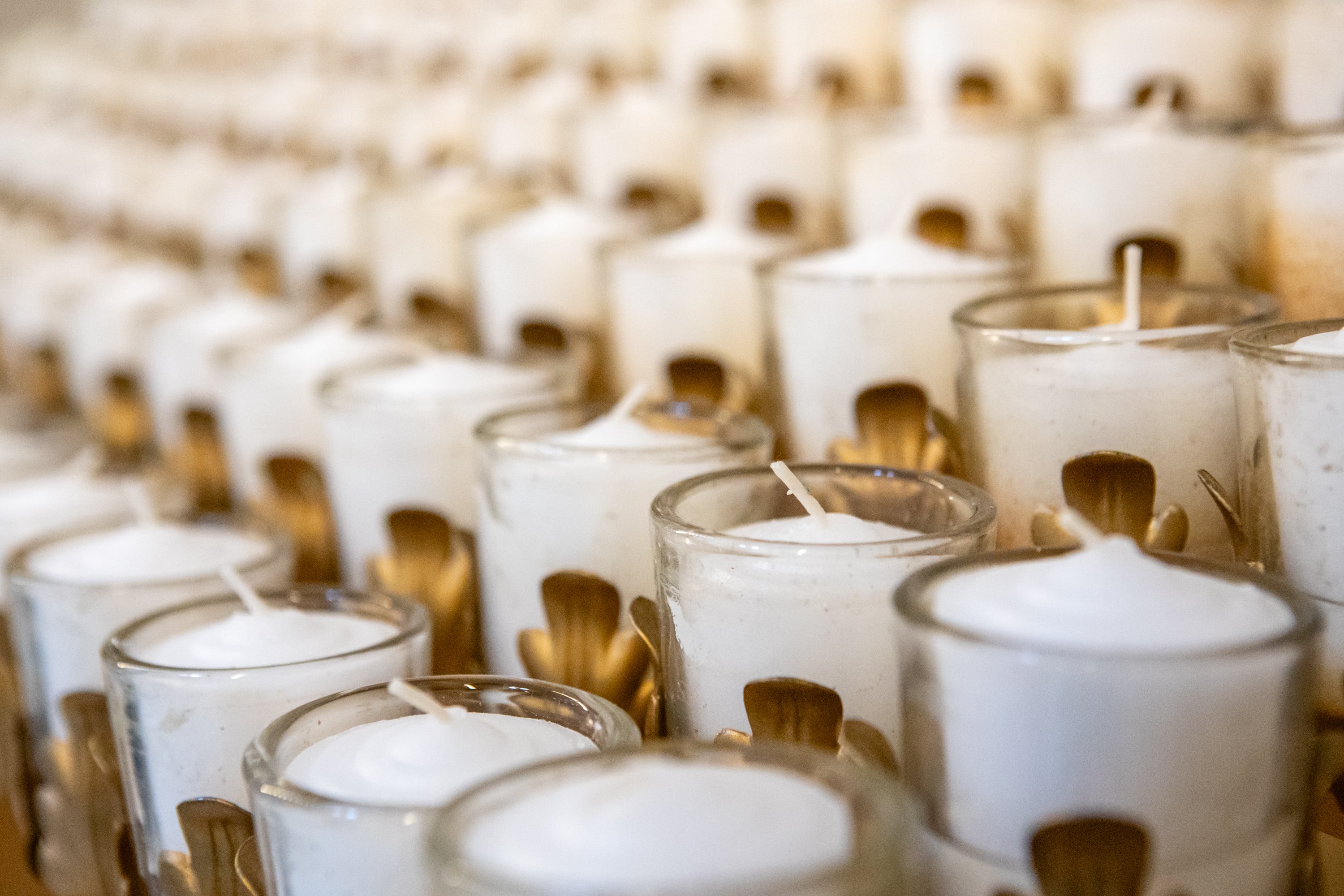 Purchase this imageLEWISTON, MAINE – April 4, 2026. Brand new candles are seen beside the altar at the Basilica of Saints Peter and Paul in Lewiston on Saturday in preparation for Easter. (Libby Kamrowski Kenny/Staff Photographer)