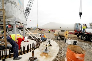 From Craig Turcotte, a materials technician from Lewiston, who is testing the strength of the concrete and grout on all of the turbine tower footings to Wayne Adams, a Farmington-based welder, who was called to Searsport to work on the big trailer that hauls the nacelle, jobs associated with the wind energy project are numerous and intricate.