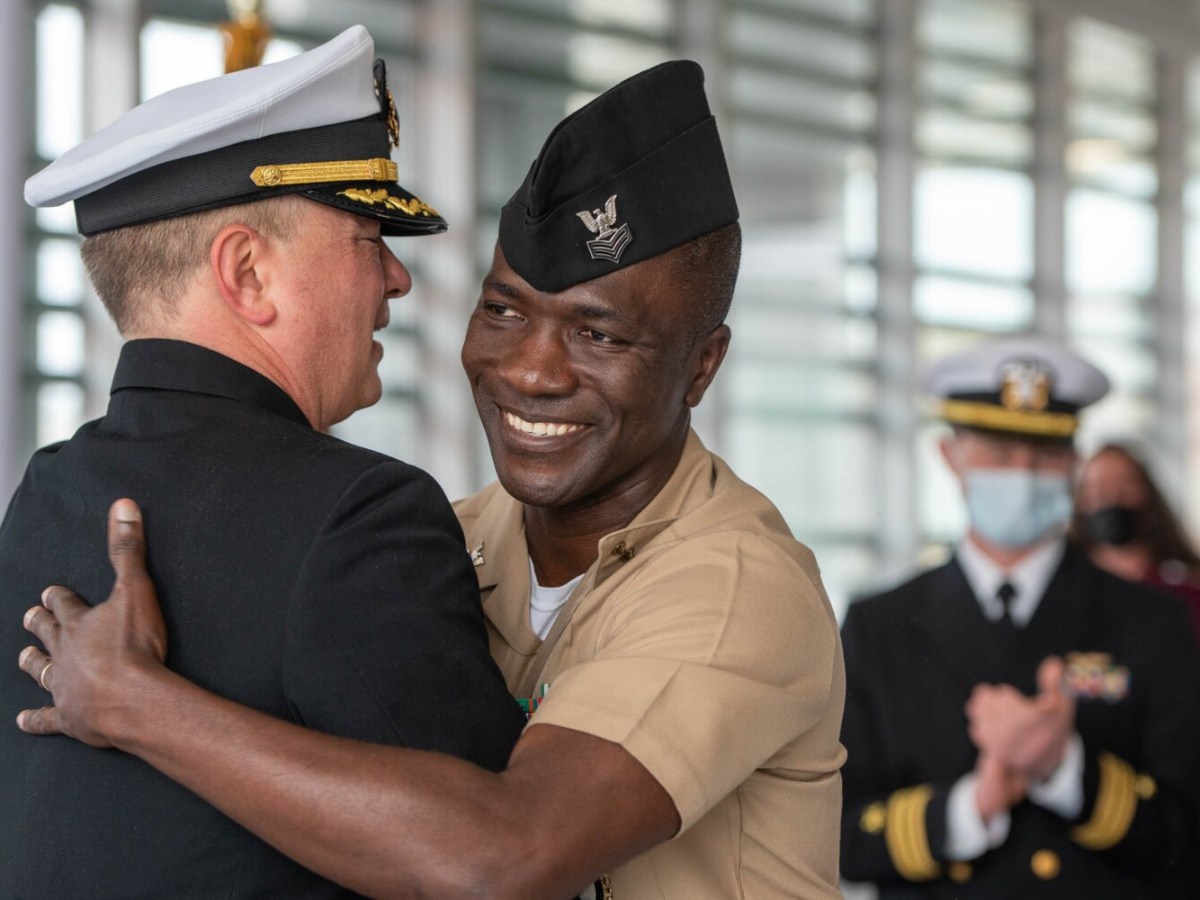 At a ceremony at Central Maine Medical Center, where Dr. Richard King received a direct commission to serve as a commander in the U.S. Navy Reserves.
