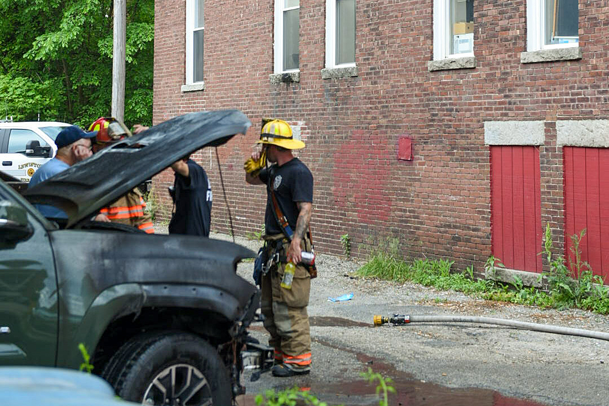 The vehicle fire started in a carport Tuesday behind Labadie’s Bakery.