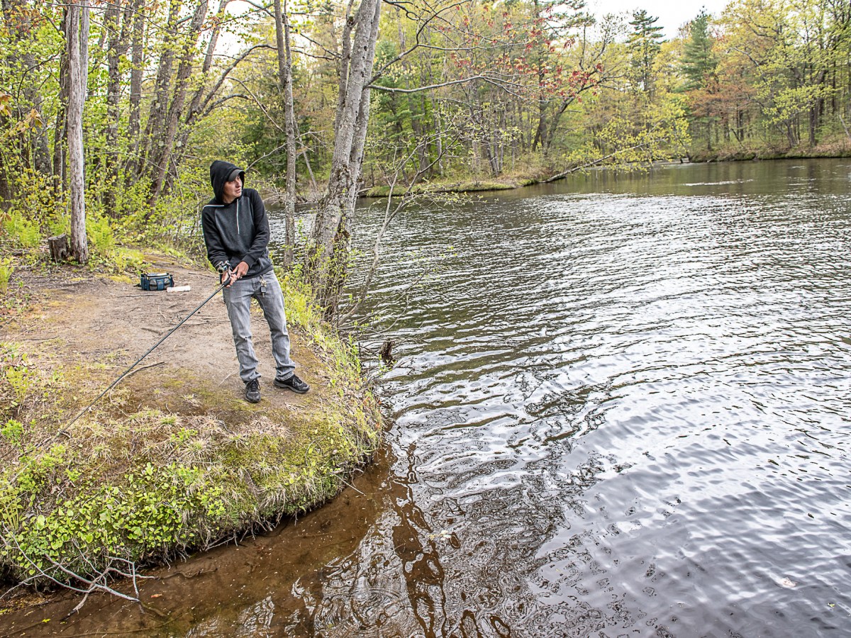 Woman fishing in Little Androscoggin River