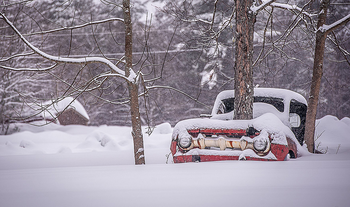 An old truck with a large tree growing through the engine compartment sits beside Patch Mountain Road in Greenwood on Monday. (Sun Journal photo by Andree Kehn)