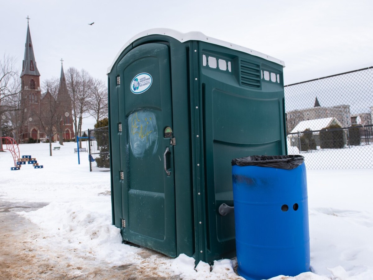 Installing permanent public bathrooms is part of the city’s larger effort to address homelessness. For now, the city has added two portable toilets at downtown locations.