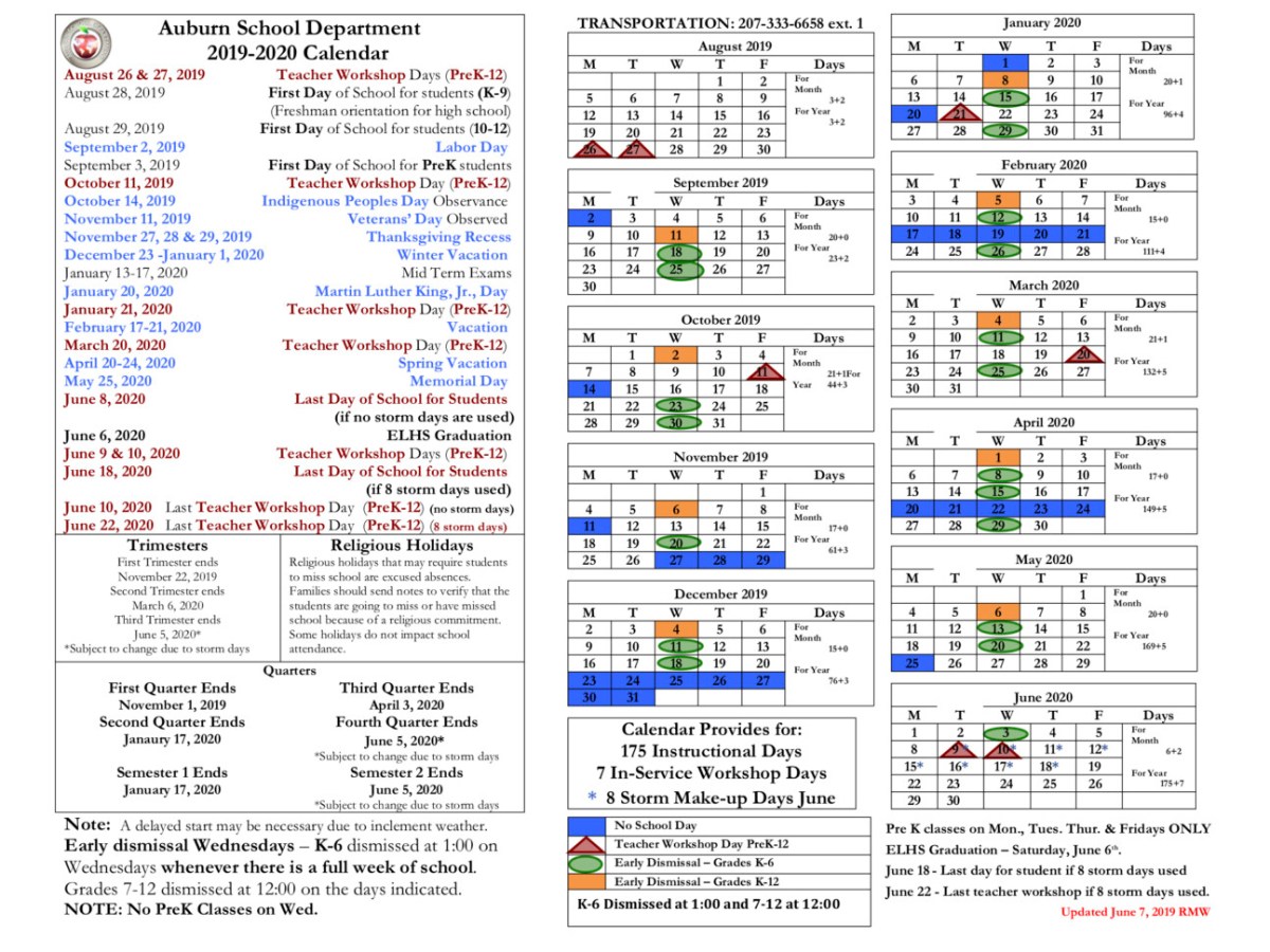 Auburn public school students in grades K-9 start classes Aug. 28. Students in grades 10-12 start Aug. 29.