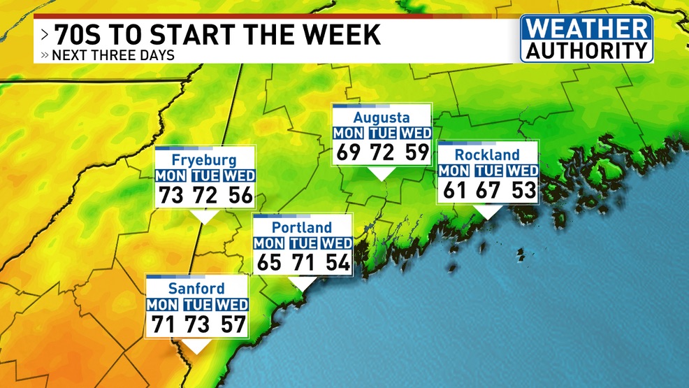 Monday and Tuesday will be very nice with widespread temperatures in the 70s.