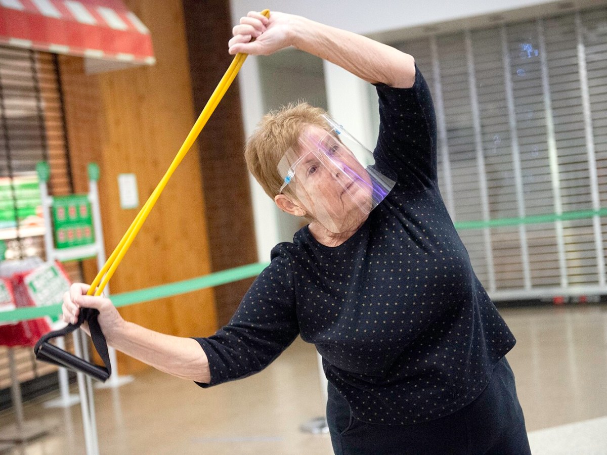 An exercise class geared especially for senior citizens is held a few times each week at center court, where participants work out to keep healthy and to keep from “losing our mind.”
