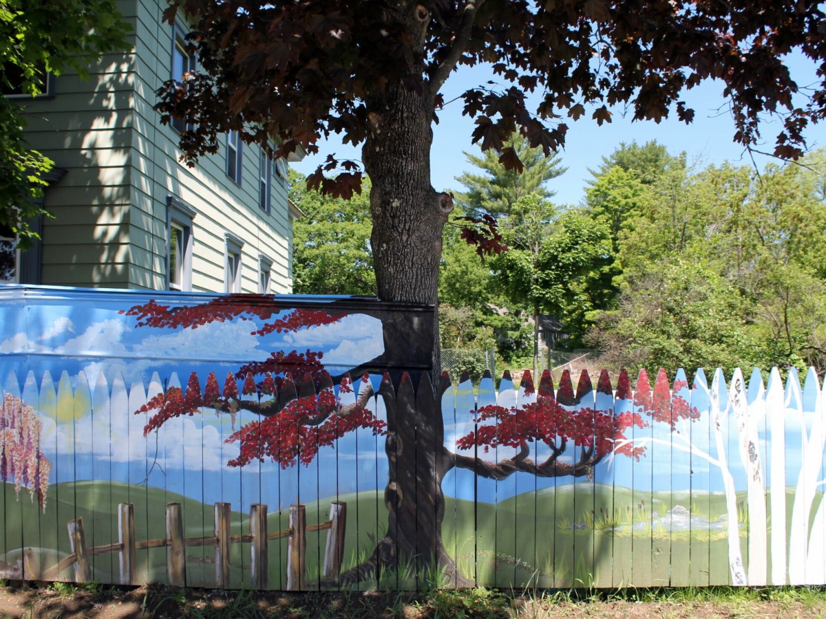 Norway artist Carrie Lynn is painting an evolving landscape mural on a 53-foot fence.