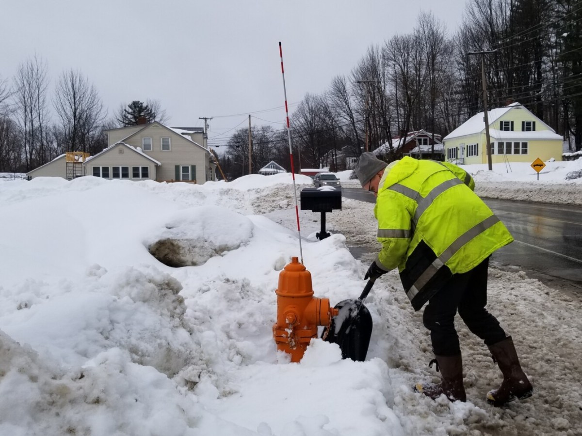 Scott Greenleaf, superintendent of Livermore Falls Water District, cleared snow from hydrants Tuesday.