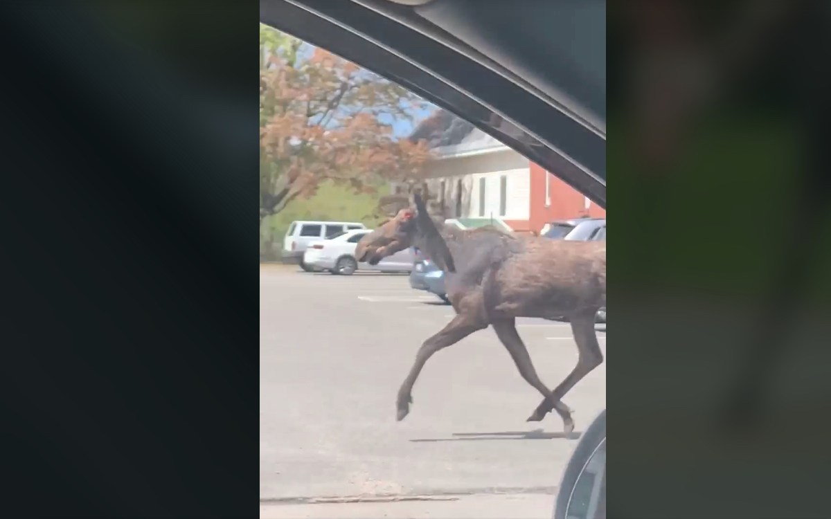 Samantha Taylor was able to get a quick video of the moose heading across a parking lot.