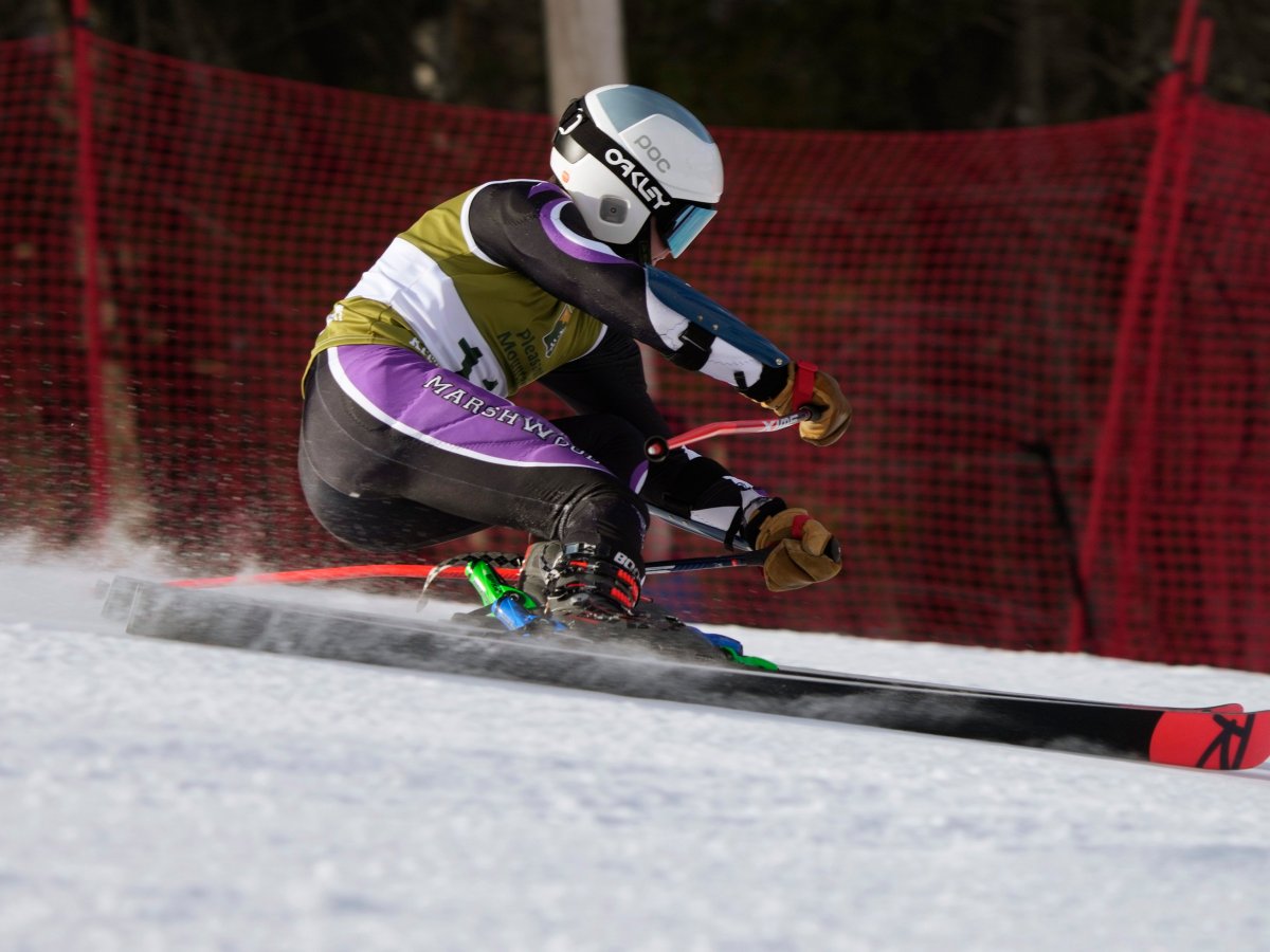 Hadley Prewitt and Quinn Maguire turn in the fastest individual runs, while Falmouth takes the lead in the team competitions for both boys (ahead of Edward Little) and girls in the two-day Alpine state championships at Pleasant Mountain in Bridgton.