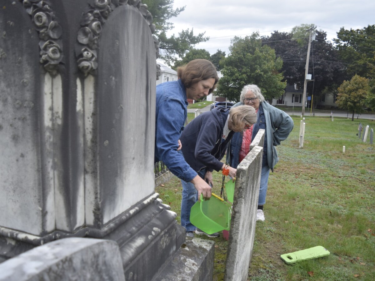 Deb Probert, trained in cemetery restorations, taught the local Daughters of the American Revolution chapter how to clean headstones at Center Burying Ground in Farmington.