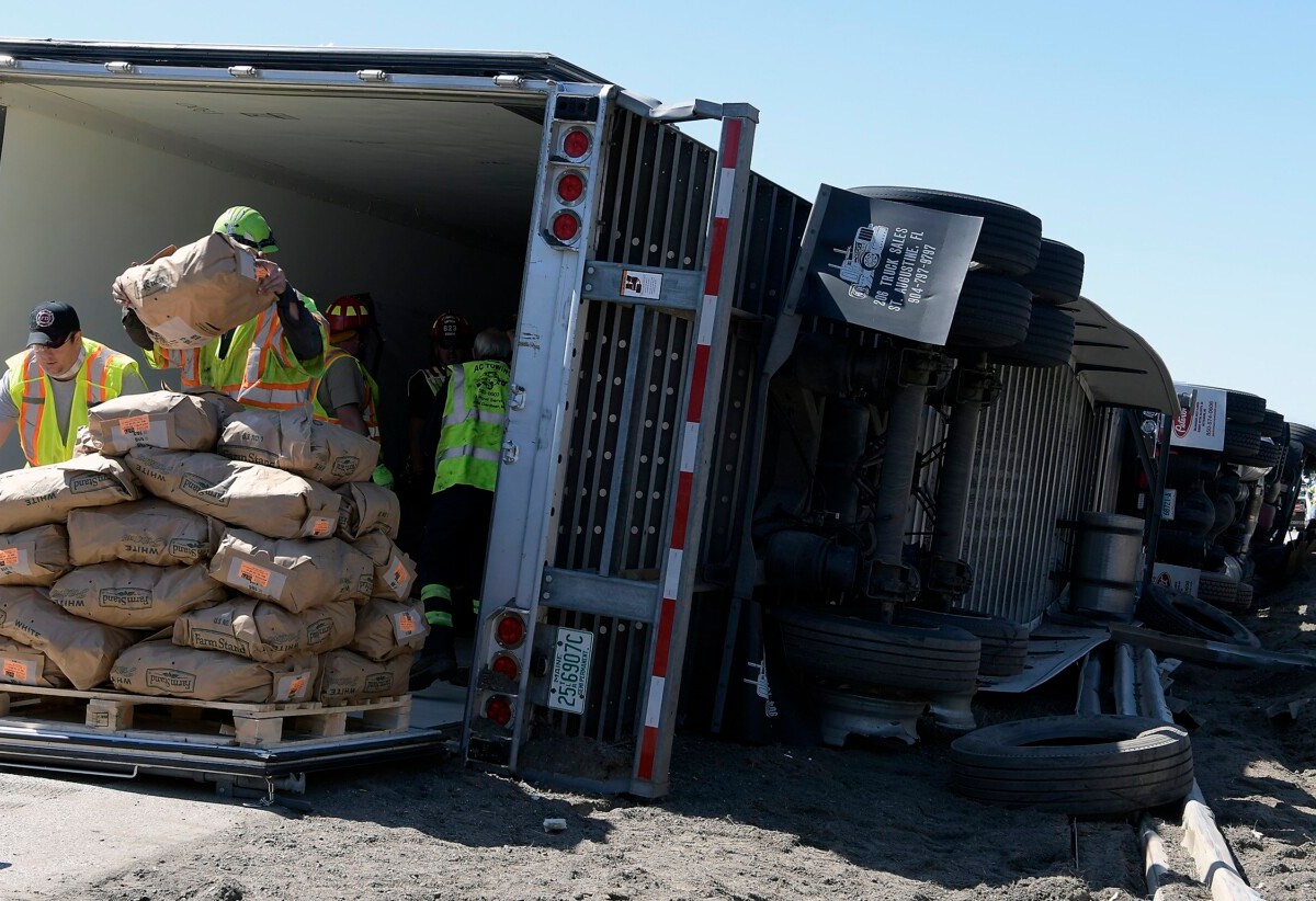 Truck carrying potatoes rolls over on Maine Turnpike in Litchfield, causing closures