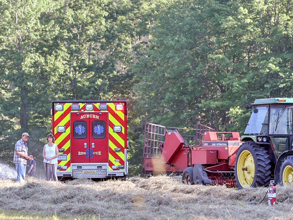 Auburn man collapses while fighting hay fire in Route 136 field