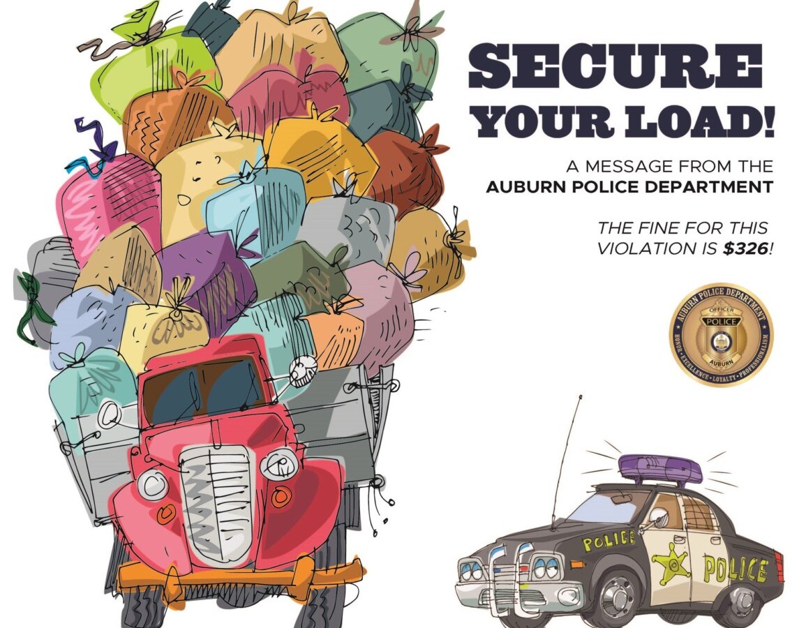 The Auburn Police Department wrote on its Facebook page that it would be “cracking down” on unsecured loads in vehicles in the coming weeks.