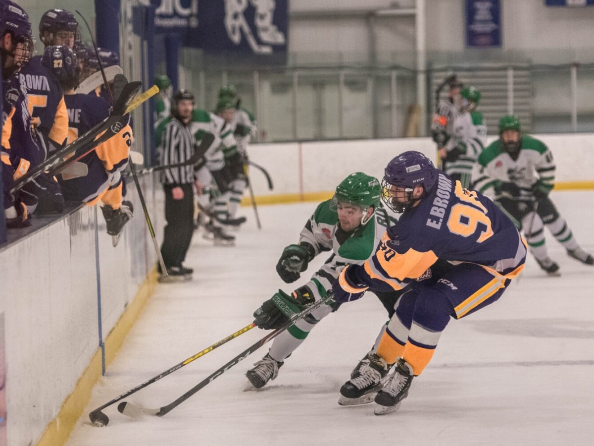 Eric Brown had two goals for the Monarchs while Gabe Potyk scored twice for the Thunder in the 5-4 loss.
