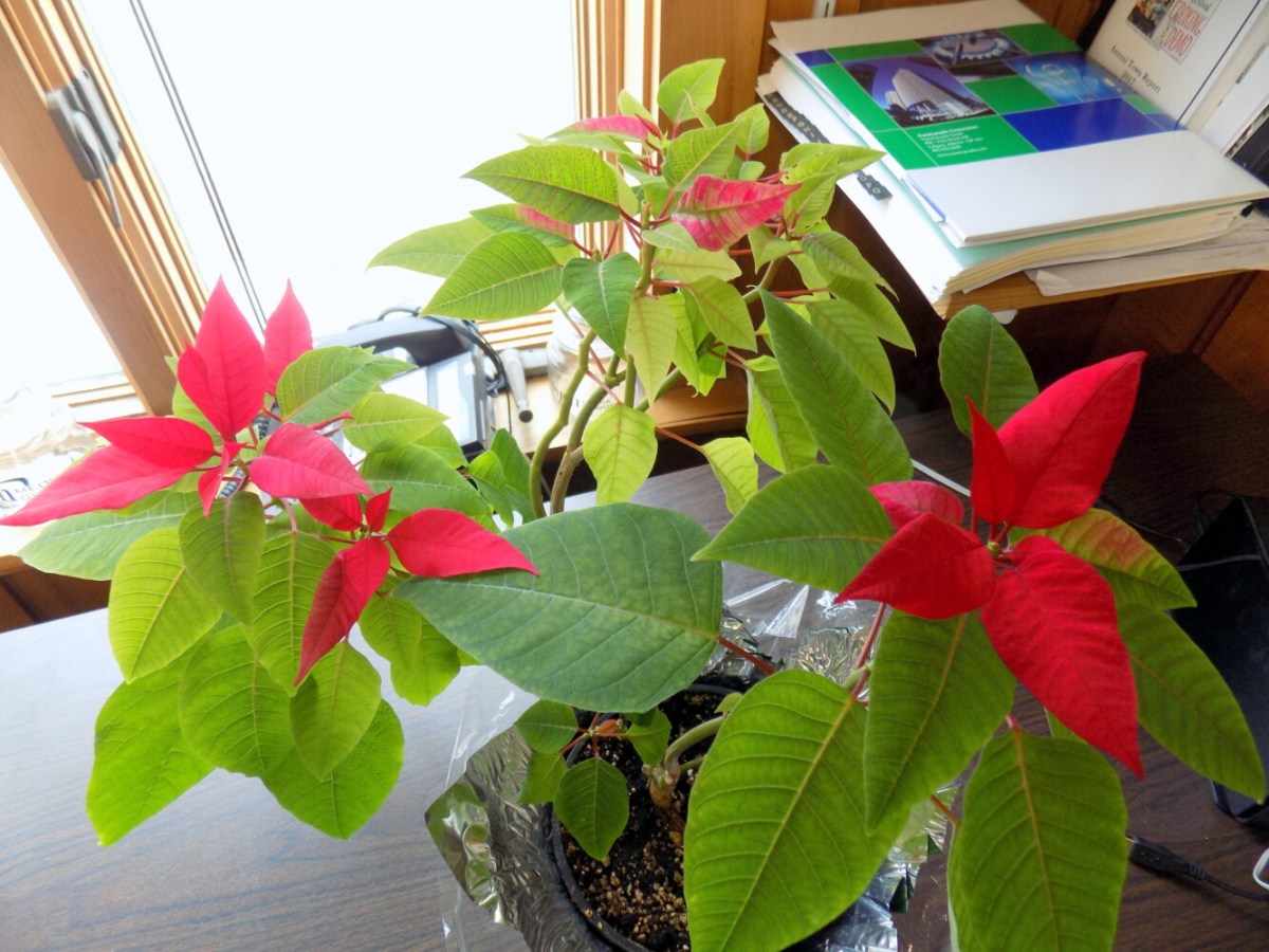Poinsettia thrives in Franklin Journal office