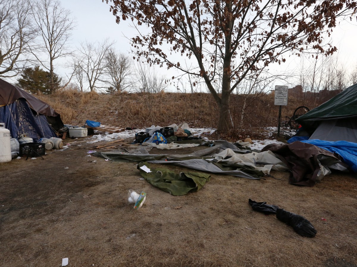 A man who has been living in a tent near where the death was discovered said he heard a gunshot in the area Wednesday afternoon.