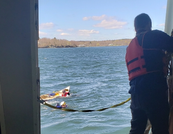 The Wabanaki ferry had about 207 people aboard when a Casco Bay Lines crew member spotted the men in the water near a capsized canoe off Peaks Island.