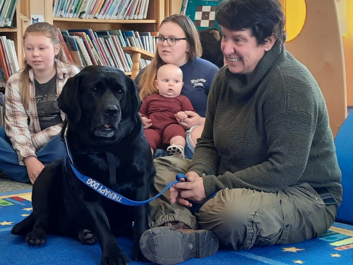 Sal, a therapy dog with Love on a Leash has been visiting the library in North Jay since last fall.