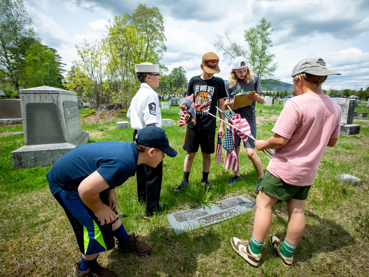 The students placed flags on veterans’ graves at Riverside Cemetery in Bethel.
