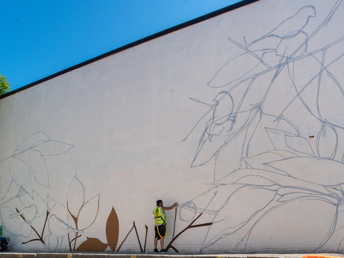 A Portland artist working with the downtown association has begun work on a project to add the mural to the side of the historic building on Main Street.