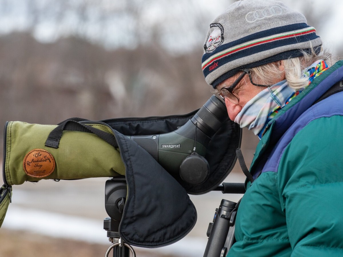 Lewiston bird watcher spots ducks on the river Monday morning.
