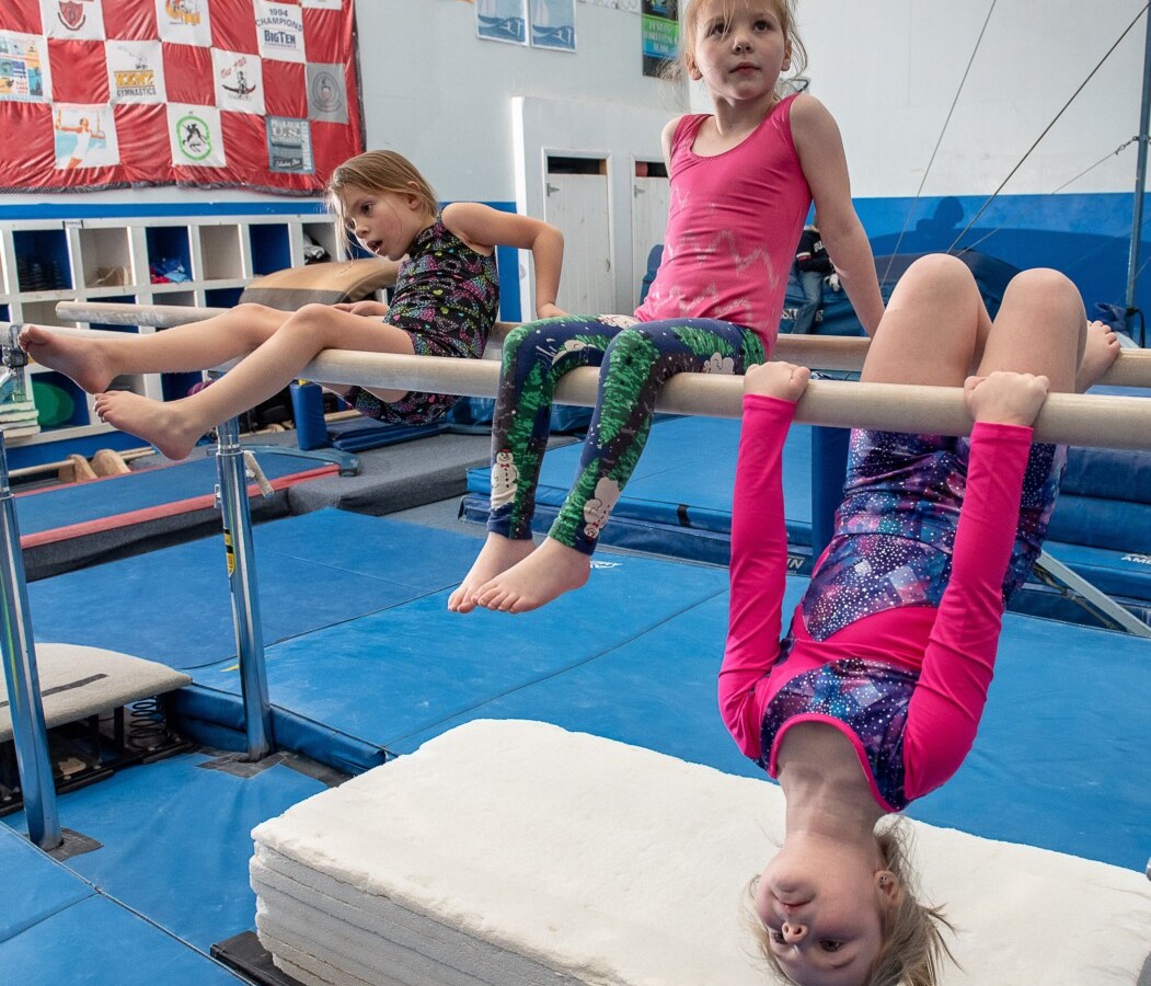 Youngsters practice their gymnastics at Lewiston center.
