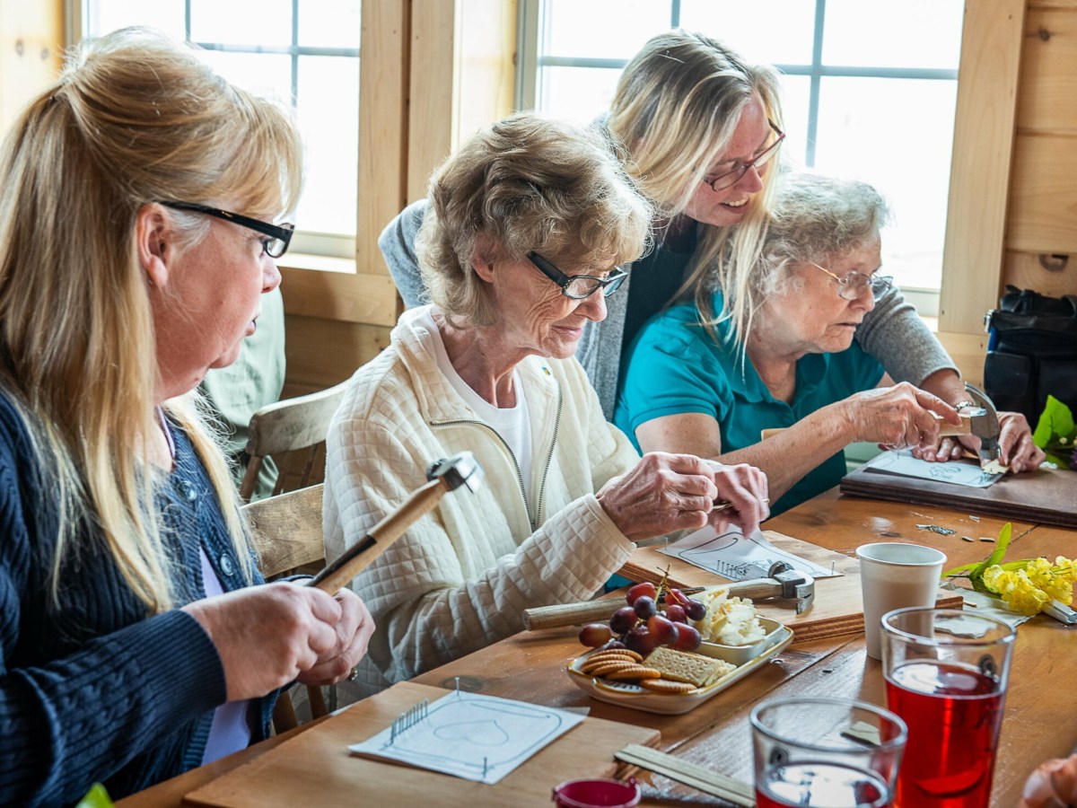 Moms and their daughters make string art and sip on wine at Vista of Maine in Greene for mothers day.