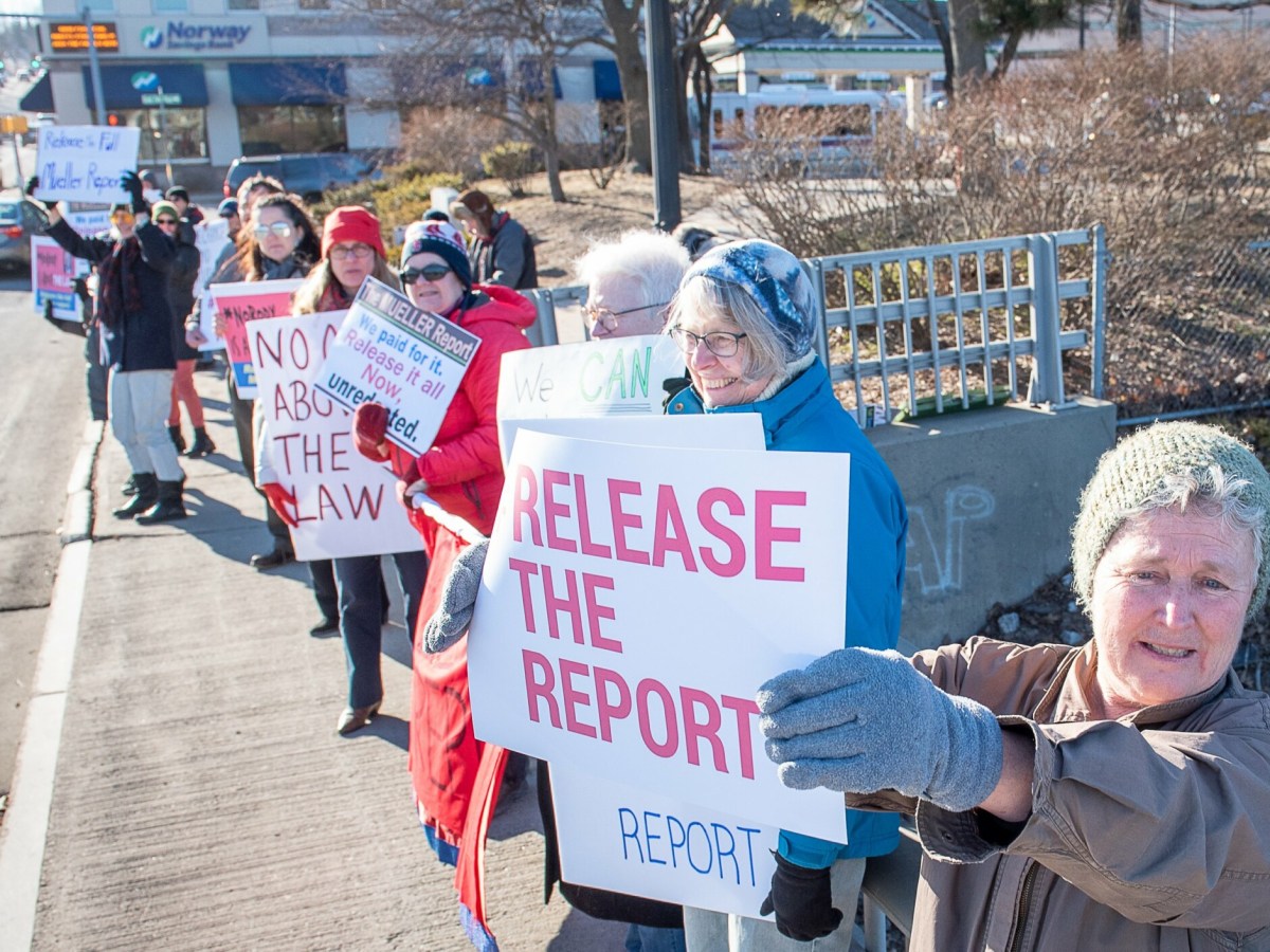 Several dozen protests on the Longley Memorial Bridge in Lewiston