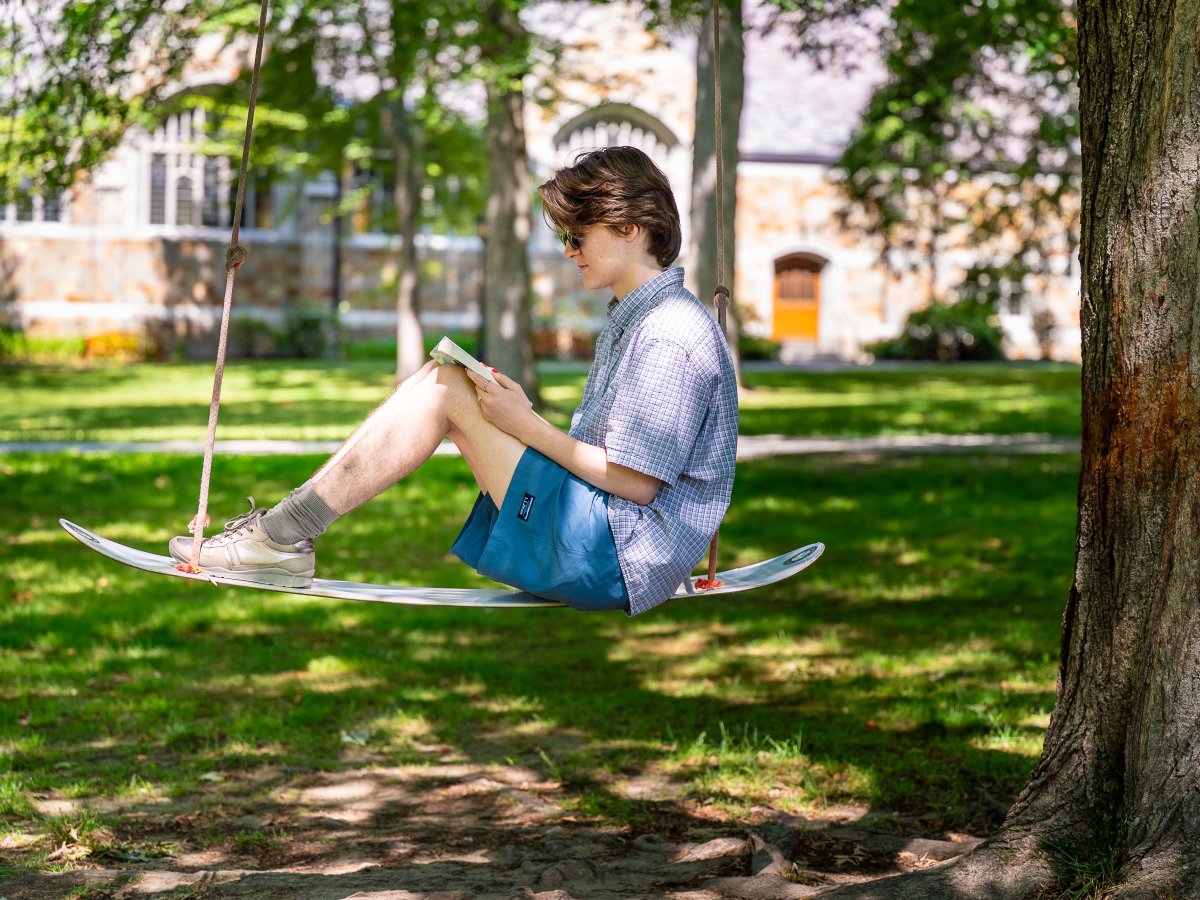 A Bates Dance Festival intern grabbed the chance to enjoy perfect summer weather on the campus Wednesday.