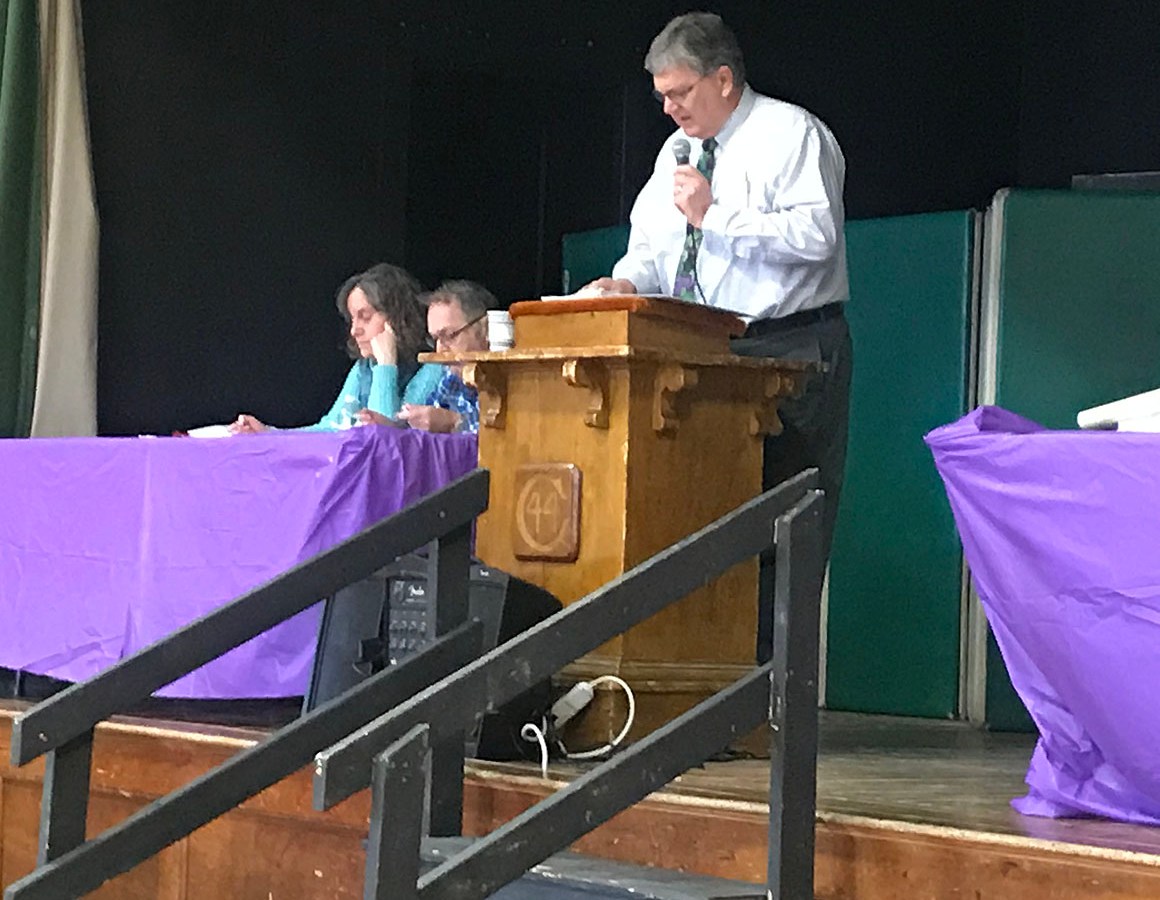 14 people attended a public hearing in Newry on whether or not the town should vote in favor of stopping its current school withdrawal process.