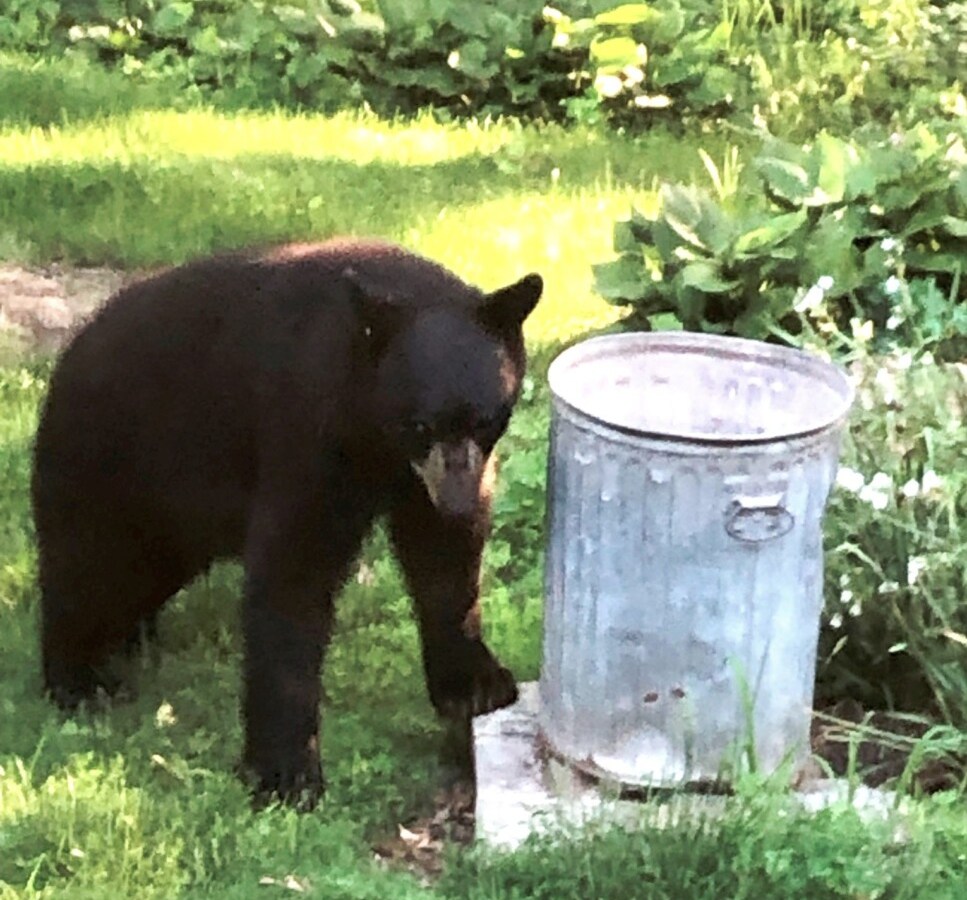 Maine Inland Fisheries and Wildlife advises if a bear visits, watch from a distance, and create loud noise to scare it away.