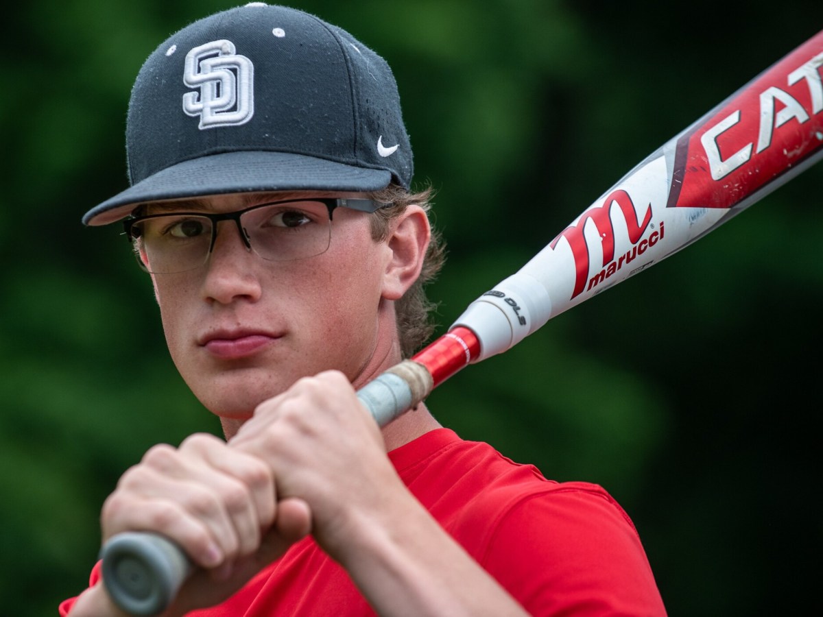 Elder Saints Man: Miles Frenette, St. Dom’s lone senior, swinging a big bat