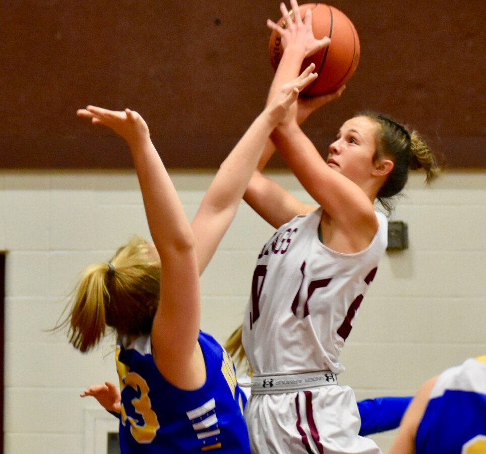 Senior Lexi Mittelstadt scores a game-high 19 points and sophomore Eva Stevens helps out with 14 to lead the Cougars to a 57-49 victory.