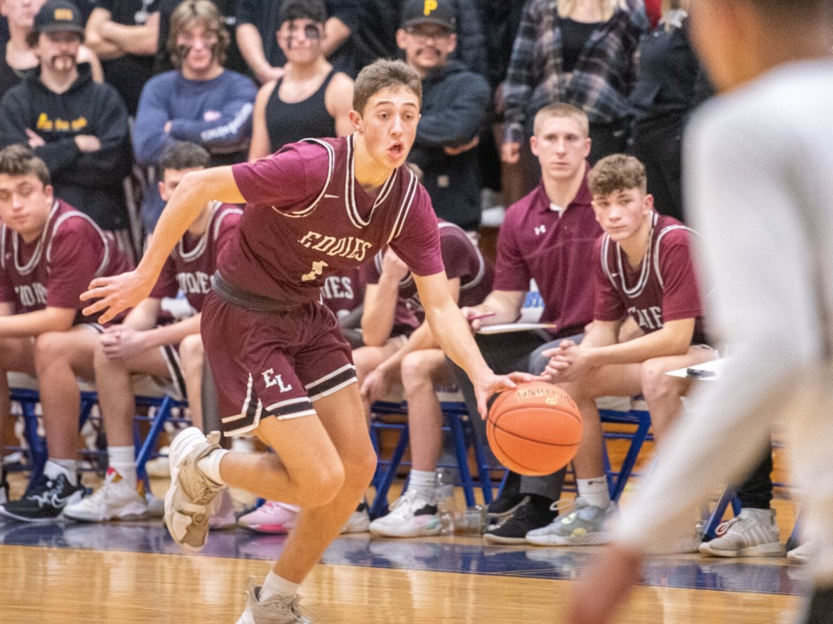 Eli St. Laurent scores the game-winner on putback as the Red Eddies and Blue Devils send the 56-year-old Edward Little gym out in thrilling fashion.