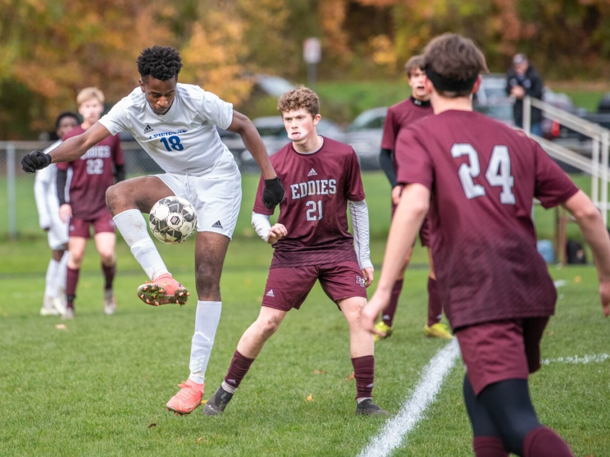 Boys soccer: Five different Red Eddies score goals in 5-2 preliminary round win over the Vikings.