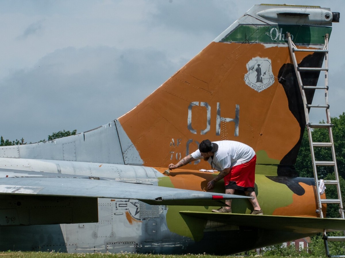 Veterans Memorial Park jet getting original camouflage paint scheme