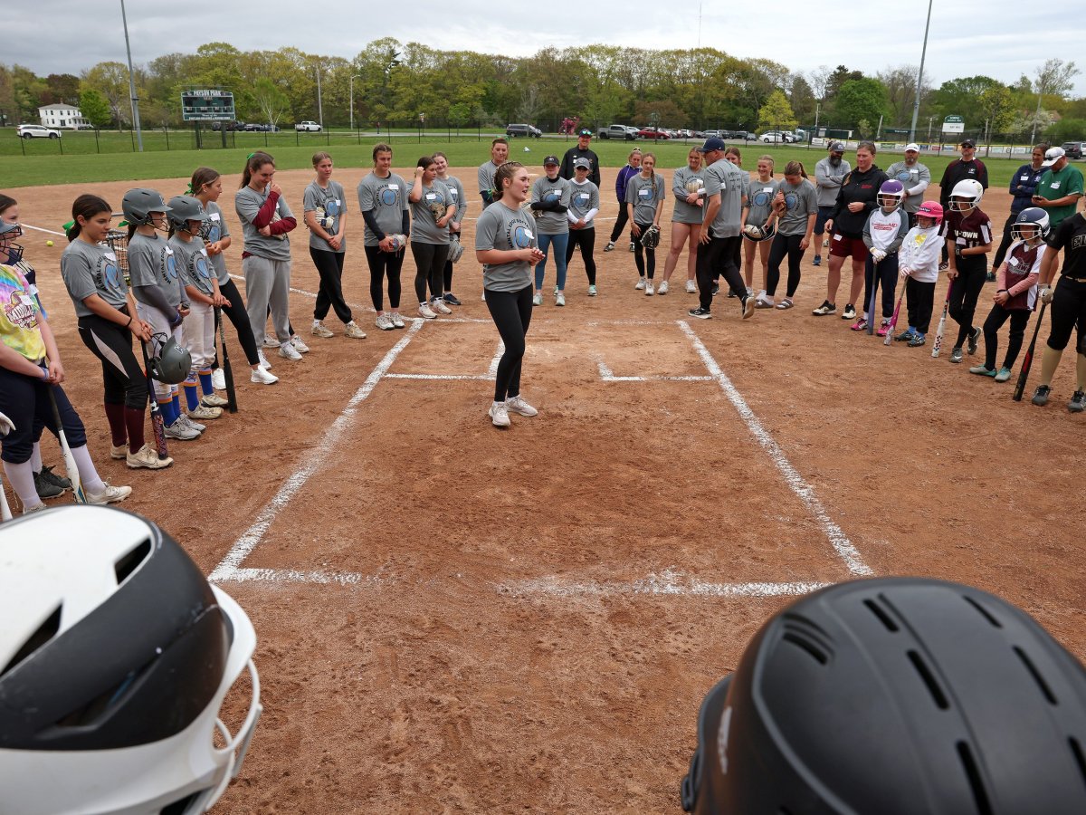 Softball instruction, as well as lessons about handling mental health, fills the day at the clinic organized by Windham sophomore Oakley McLeod.