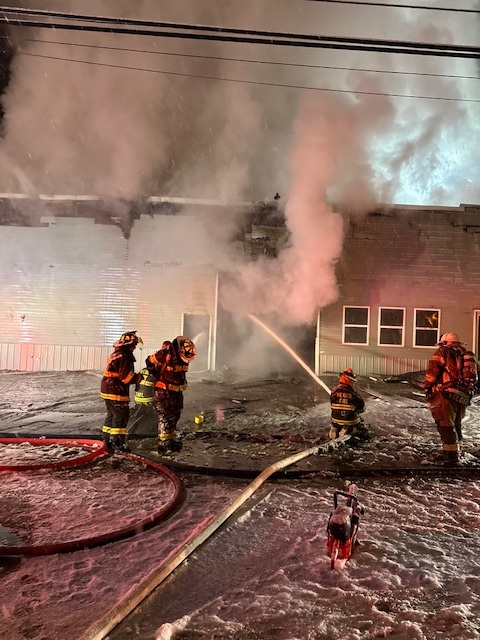 About 50 firefighters from seven departments responded Tuesday night to a blaze at Adley’s Auto Sales and Service.