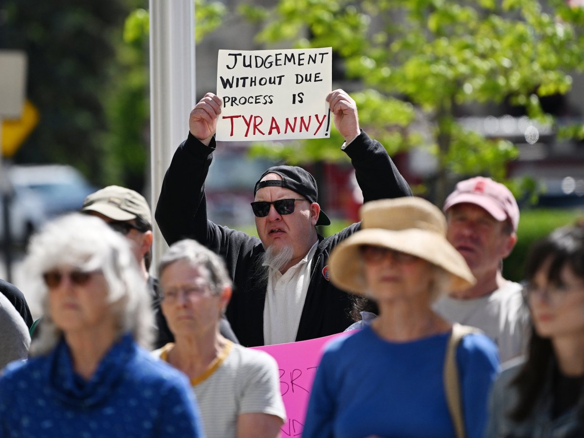 A group of demonstrators greeted Maine’s senior senator, but the event remained civil.