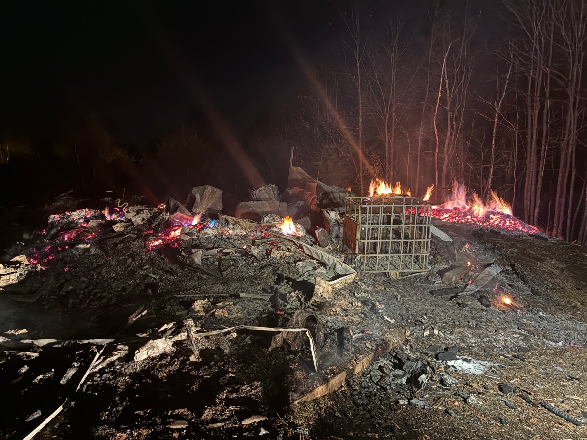 Firefighters from several towns had to use side-by-side utility vehicles to gain access to the property on Valley Road.