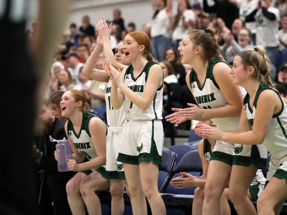 The Phoenix take on Ellsworth in the Class B state championship game at the Portland Expo on Tuesday night.