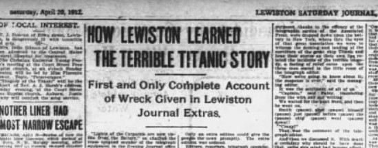 How Lewiston Learned The Terrible Titanic Story: First and Only Complete Account of Wreck Given in Lewiston Journal Extras