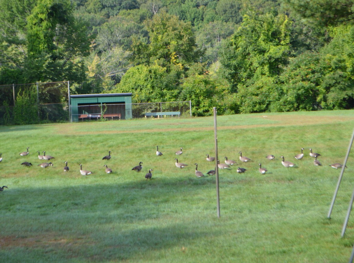 A gaggle of geese landed on the Livermore Falls Recreation Field.