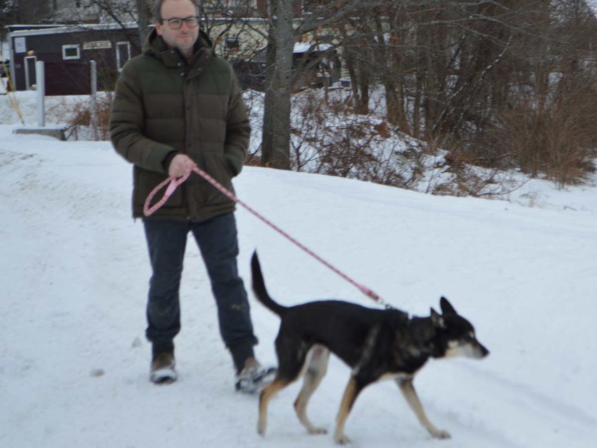 Ben Hanstein of Farmington walks his dog, Samantha, on Tuesday.
