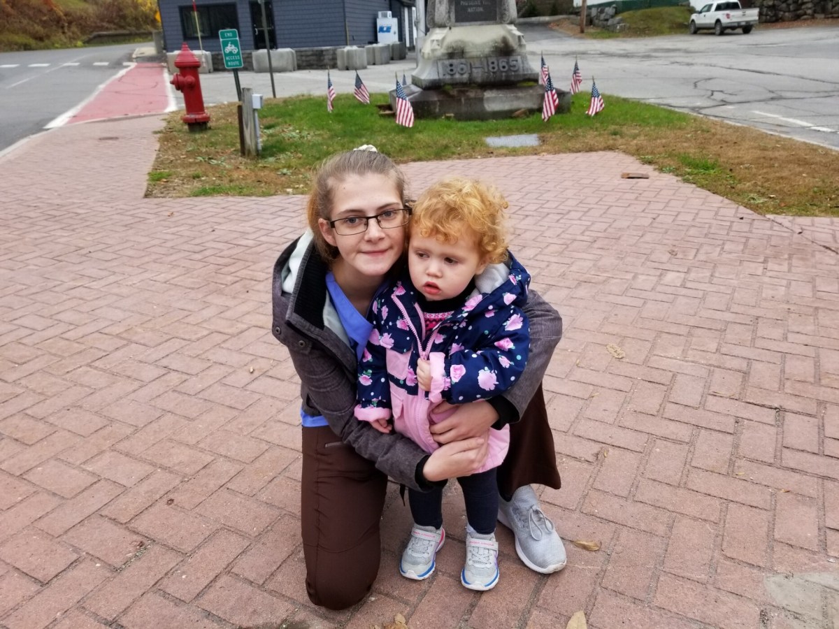 Isabella Mason, 19 months, of Wilton waited with her mother, Pamela Gould on Tuesday for her brother, John, to get home from school.
